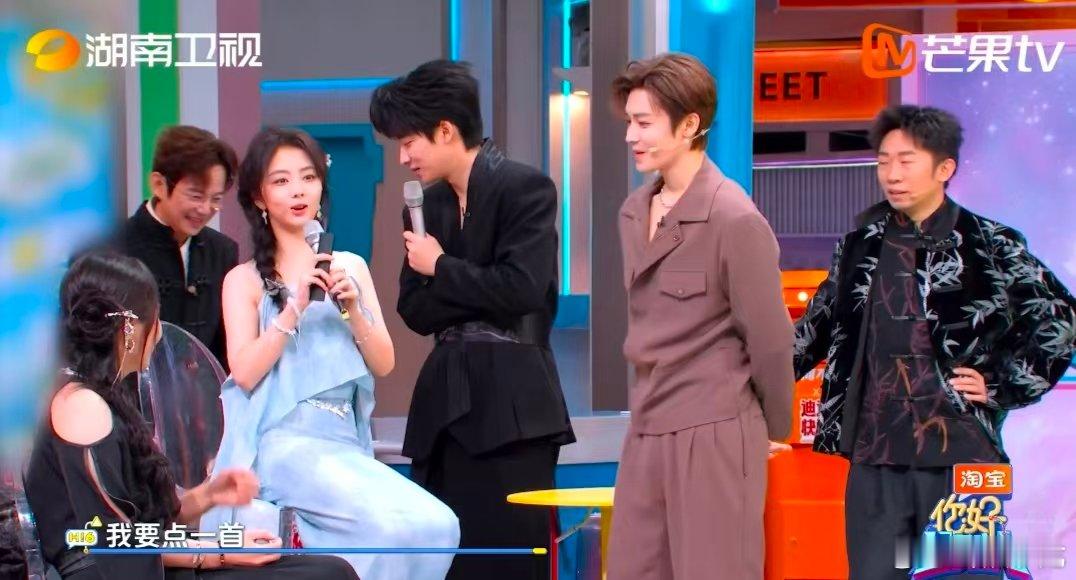 谭松韵让侯明昊给她唱关键词你好星期六 松韵现场点歌这波操作好可爱,小侯也太配合,立刻清唱《关键词》,两个人的化学反应真的很好。