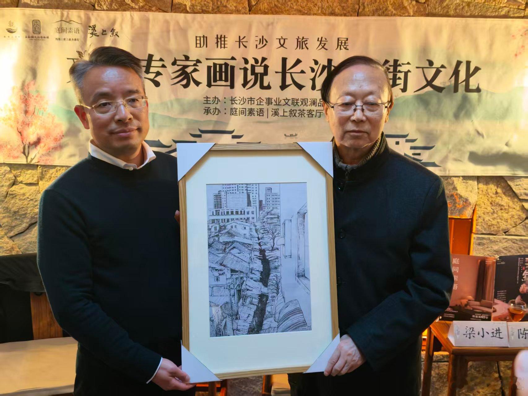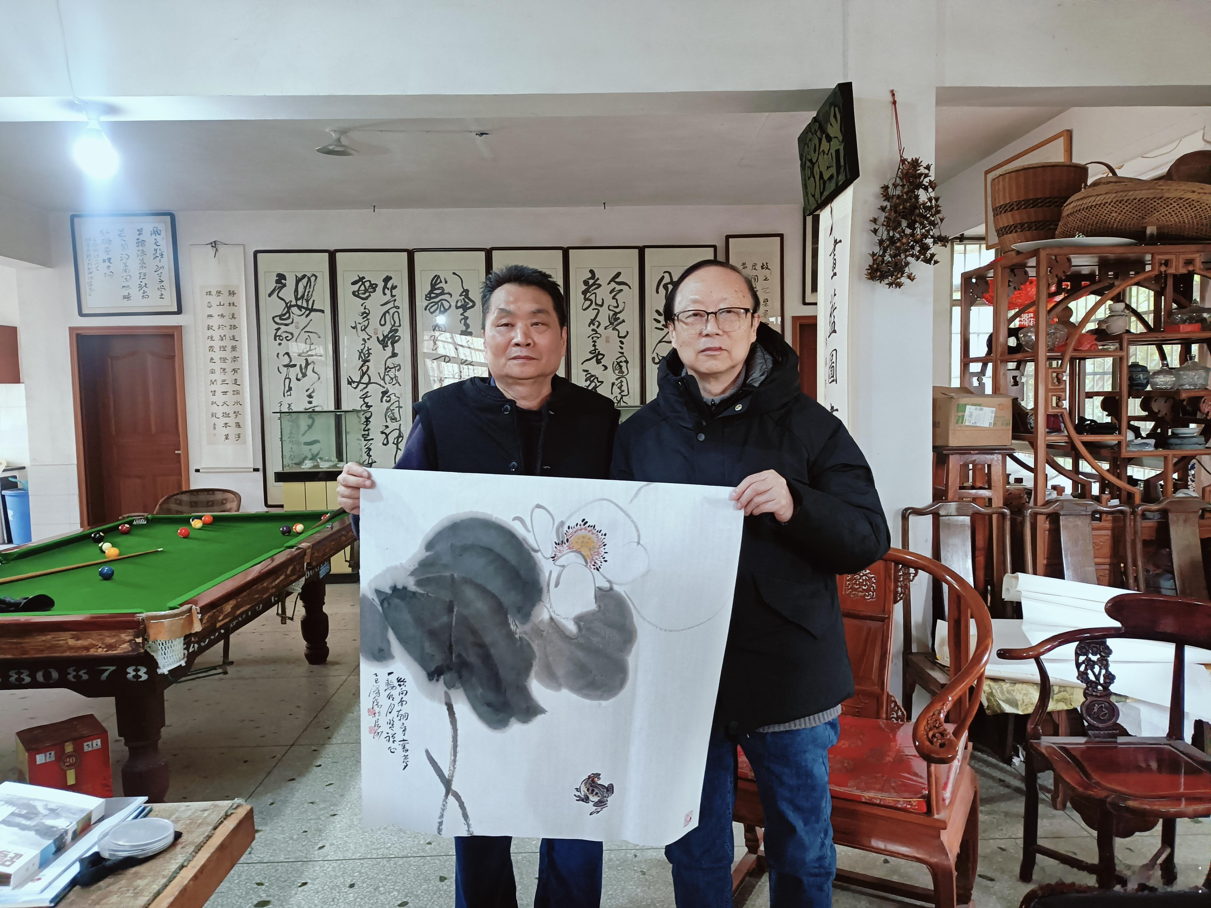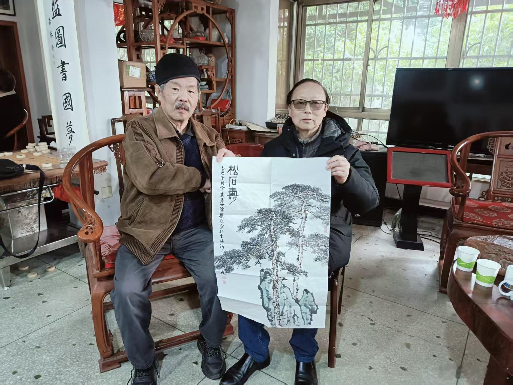 2025年岁末连获4位书画名家赠画。1.周柯章赠《柿柿如意》;2.陈藏秋赠《松石寿》;3.杨泽琦赠《一轮明月照禅心》;4.袁立代李渝基赠钢笔画《半湘街的布市》