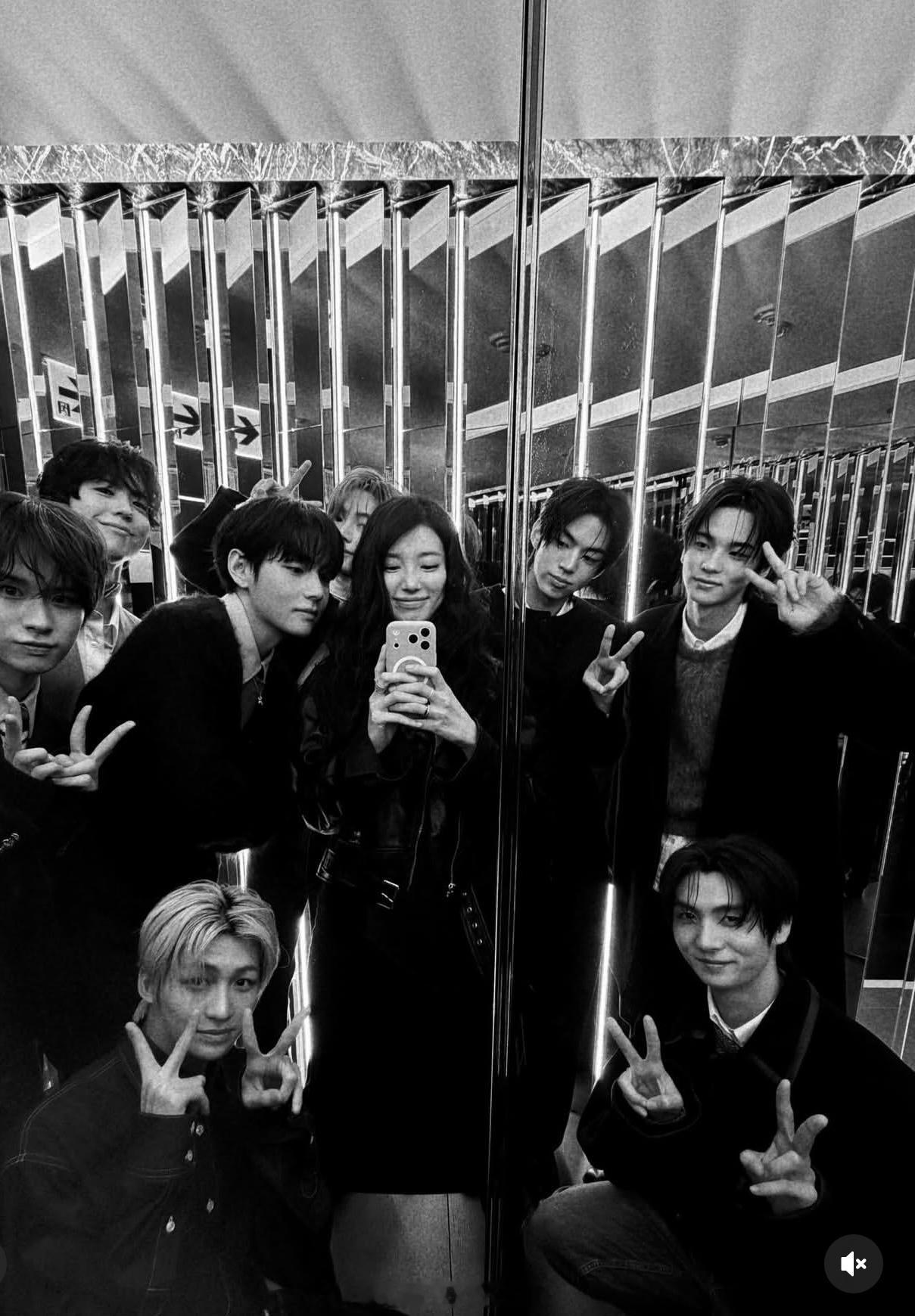 裴秀智 裴秀智 一组黑白看秀合照图她和男idol还有男演员