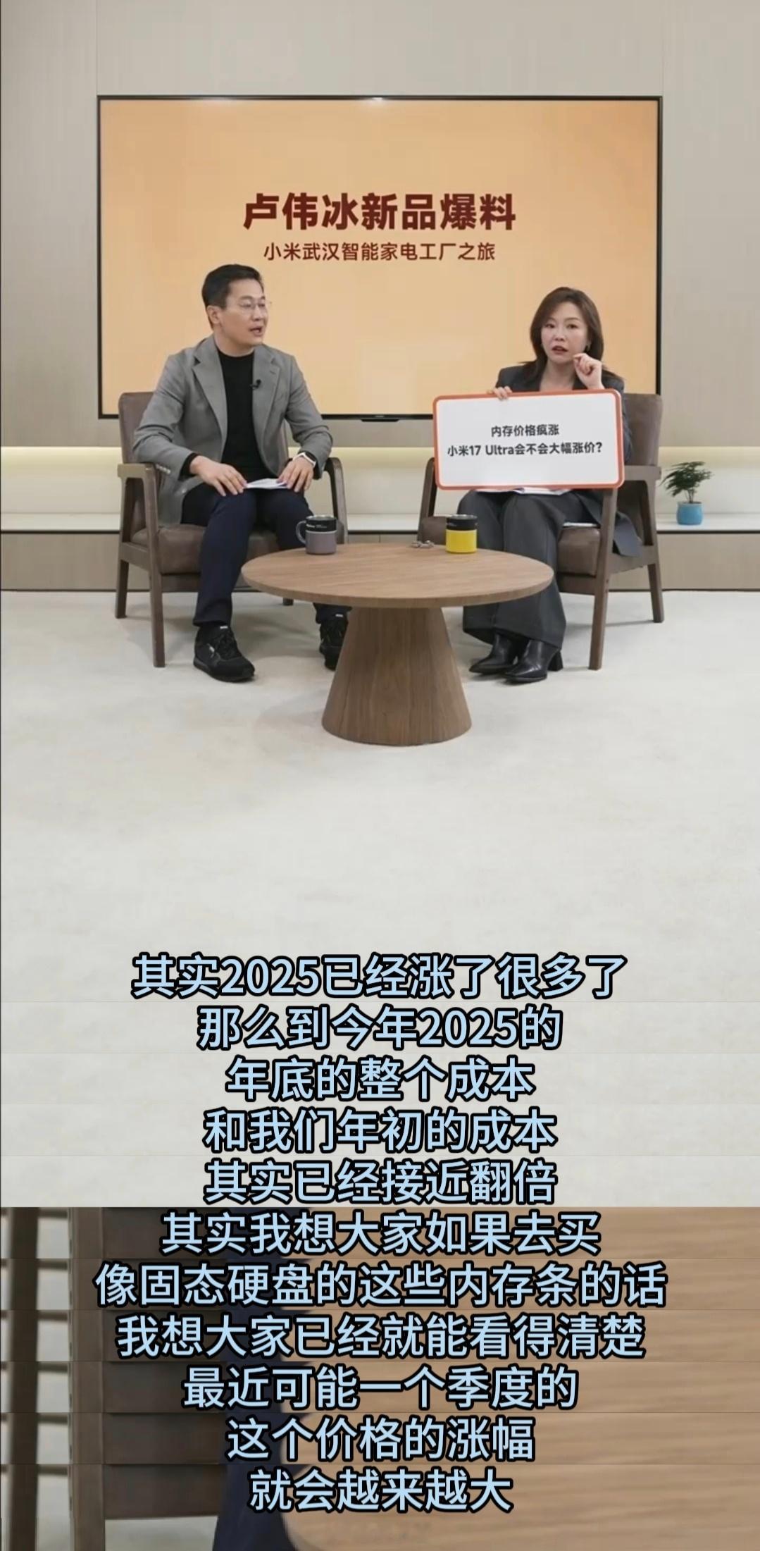 卢伟冰确认小米17Ultra涨价 卢总在今晚的直播里透露小米17 Ultra 会涨价,其实这也是意料之中的。受内存涨价影响,2026 年新机将普涨 7 %左右,而且这波涨价还会持续。单就内存成本这块,就已经很高了 … 而且小米17 Ultra 作为影像旗舰,拥有 2026 年唯一的一英寸 LOFIC 主摄 + 2 亿 APO 长焦,配置实力撑得起这个价位。与其让厂商减配保低价,不如涨价保体验,这才是机皇该有的态度,咱们就坐等发布吧。