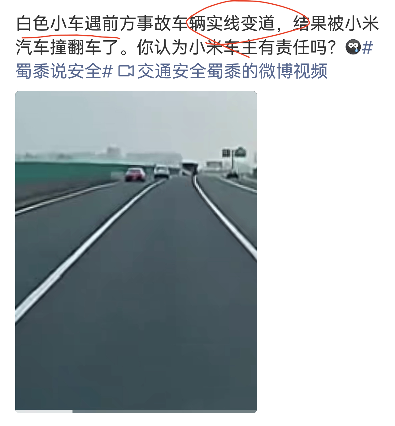 你看典不典,实线变道的明明是『白色小车』,被点名的却是小米汽车,为什么这里就不用『蓝色小车』来描述了?