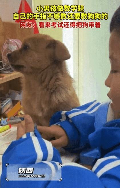 有小学生辅导作业,笑到捶桌! 娃算10+15,手指头数完不够,直接拽来家里狗子的爪子接着数。 狗狗一脸生无可恋,估计心里在吐槽:这辈子没这么无语过,看门的怎么还得兼职教具了? 亲妈在旁边看得又气又笑,这脑洞,不服不行!