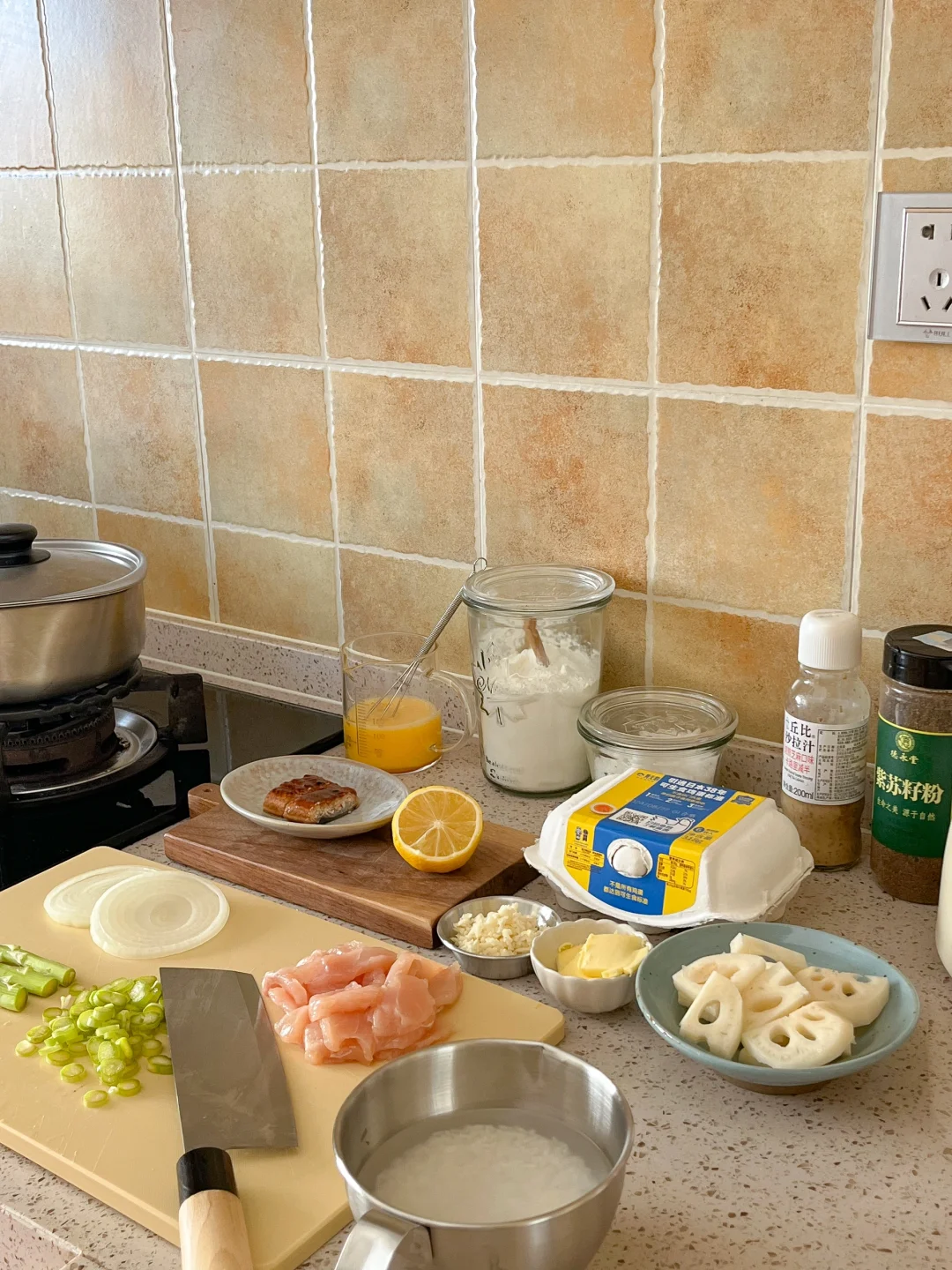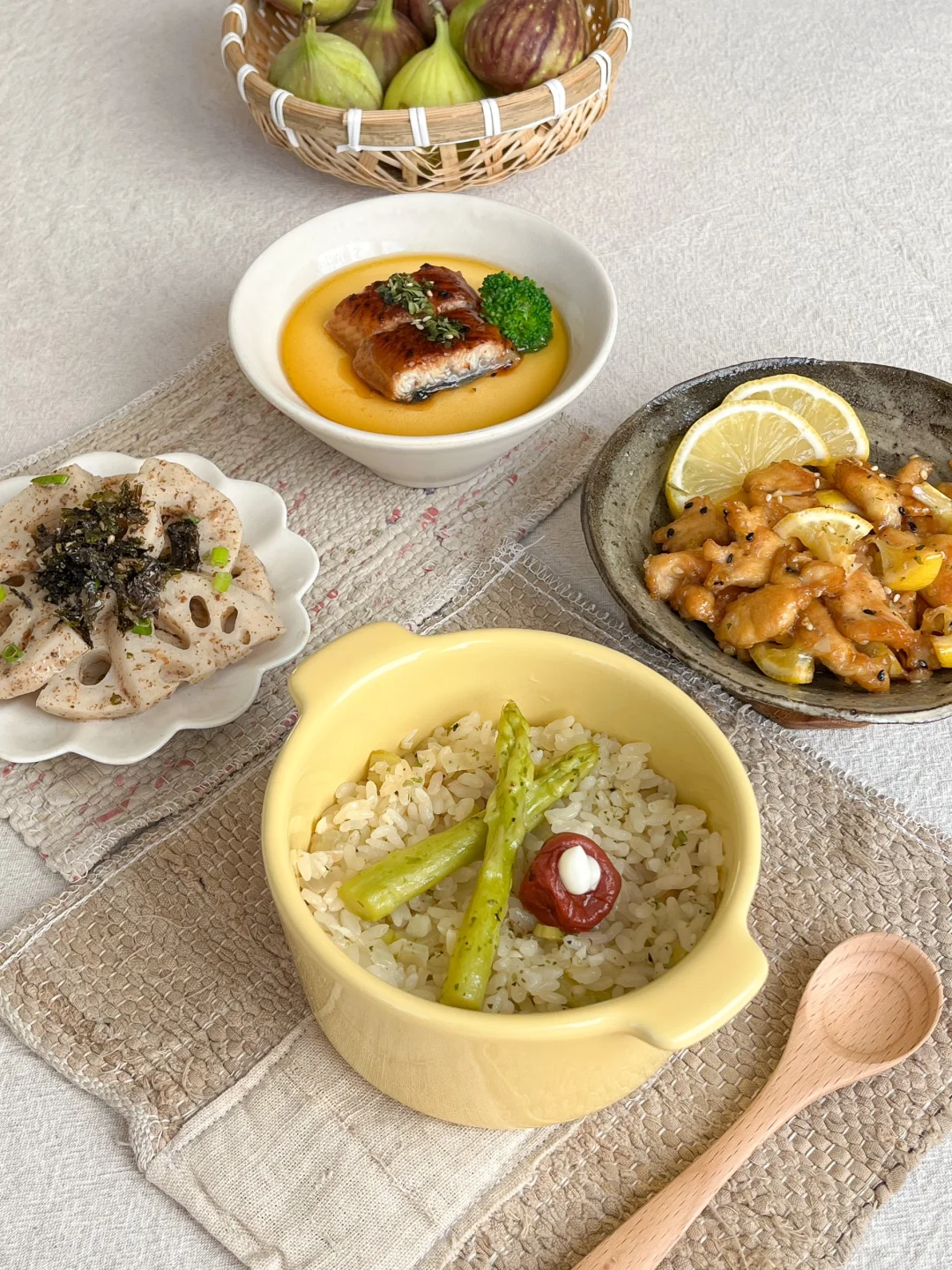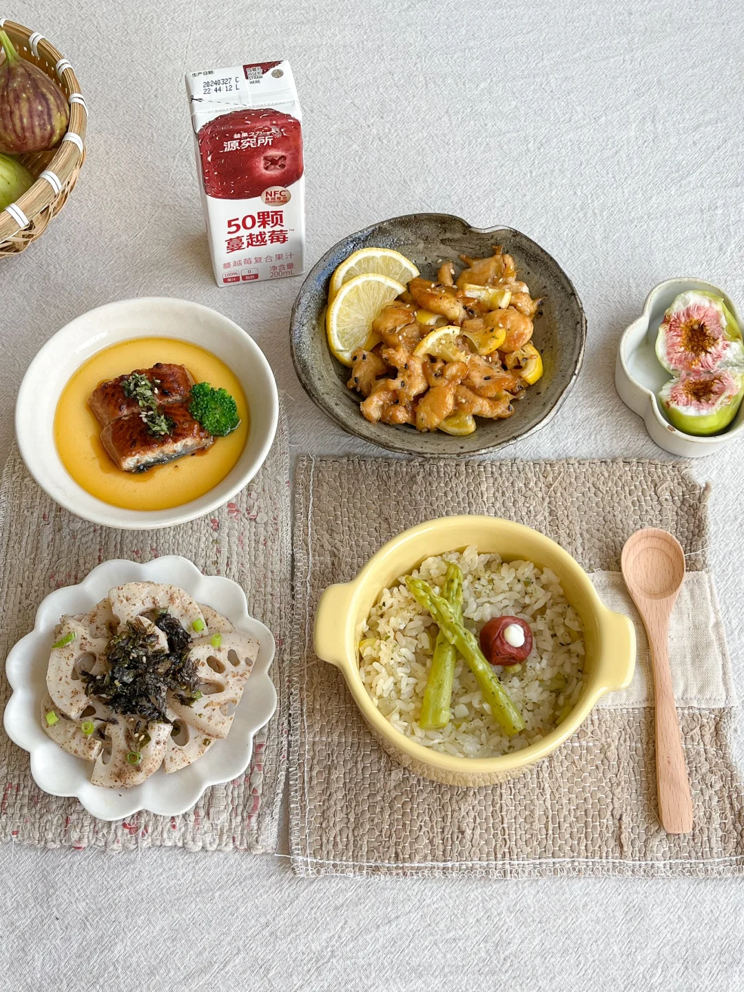 🧾午餐: 黄油蒜香饭🧄 柠檬煎鸡片🍋 沙拉汁拌藕片🥨 鳗鱼蒸蛋🍳 无花果🫐 之前在一家日料店吃过黄油蒜香饭 那味道香的让我一直记到现在 今天在家试一下 做法很简单 黄油一小块 那蒜末炸香 加一点蔬菜 洋葱和芦笋丁炒香 加泡好的米 两勺鲣鱼汁调味 没有的话加一点酱油 焖熟打开盖子 哇塞 满屋的黄油蒜香味! 🫕鳗鱼蒸蛋 买了一条蒲烧鳗鱼 做鳗鱼饭吃掉了一半 做蒸蛋放几块也很好吃 🪷沙拉汁藕片 现在正是吃藕的季节 可新鲜了 莲藕切稍厚一点的片 加点盐煮熟 捞出来过下冷水 加两勺沙拉汁和紫苏籽粉 拌匀就OK啦 加点小葱花或者紫菜碎点缀