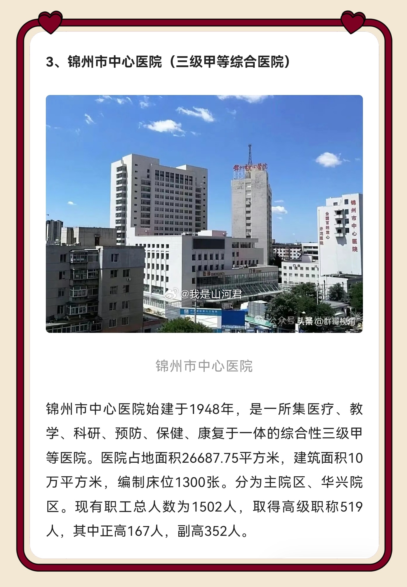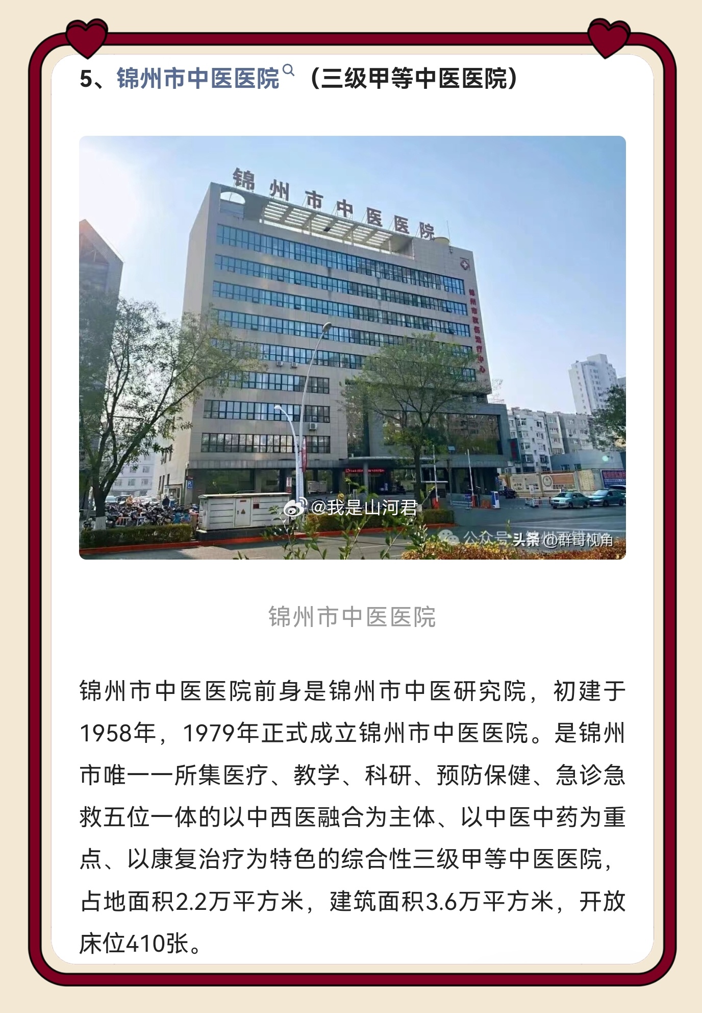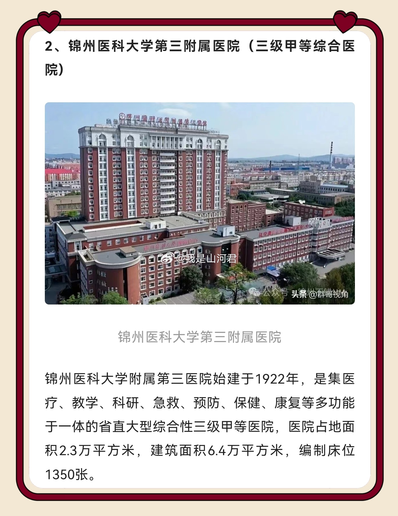 健康 锦州作为辽西医疗高地实至名归!锦医大一院、市中心医院等十家三级医院坐镇,既有综合三甲扛鼎疑难重症,又有专科强院精准发力,还能辐射辽西、蒙东 优质资源沉到了我们家门口,检查结果跨城认可,这才是区域医疗中心该有的样子,为锦州医疗实力点赞!同城热点创作计划医院删除小洛熙尸检报告情况说明 锦州·锦州市自媒体协会