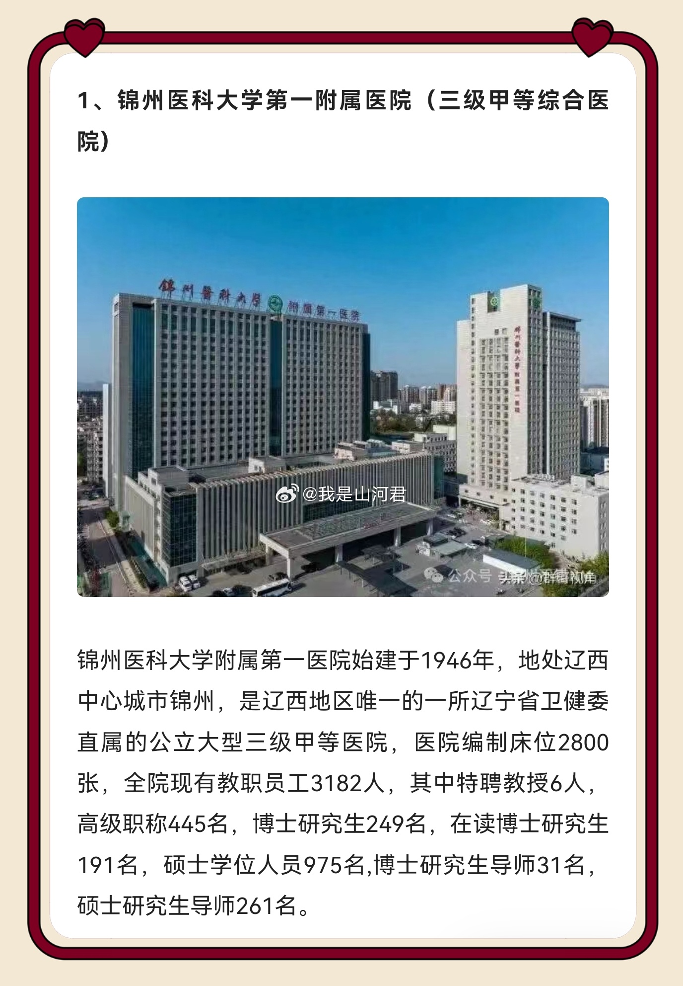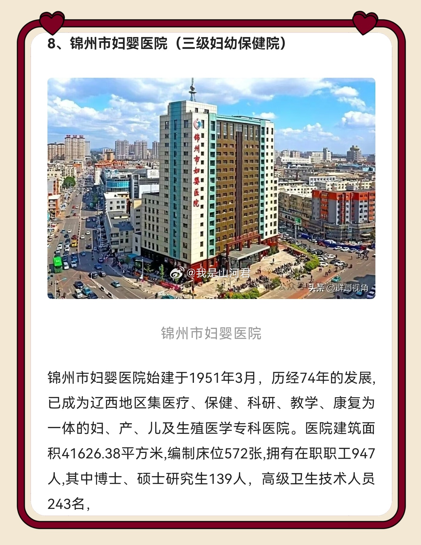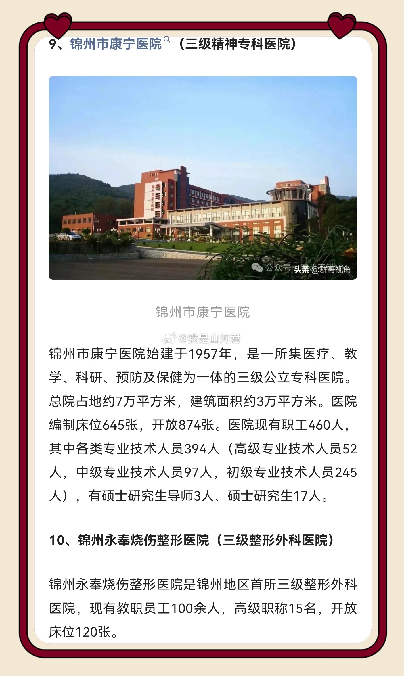 健康 锦州作为辽西医疗高地实至名归!锦医大一院、市中心医院等十家三级医院坐镇,既有综合三甲扛鼎疑难重症,又有专科强院精准发力,还能辐射辽西、蒙东 优质资源沉到了我们家门口,检查结果跨城认可,这才是区域医疗中心该有的样子,为锦州医疗实力点赞!同城热点创作计划医院删除小洛熙尸检报告情况说明 锦州·锦州市自媒体协会