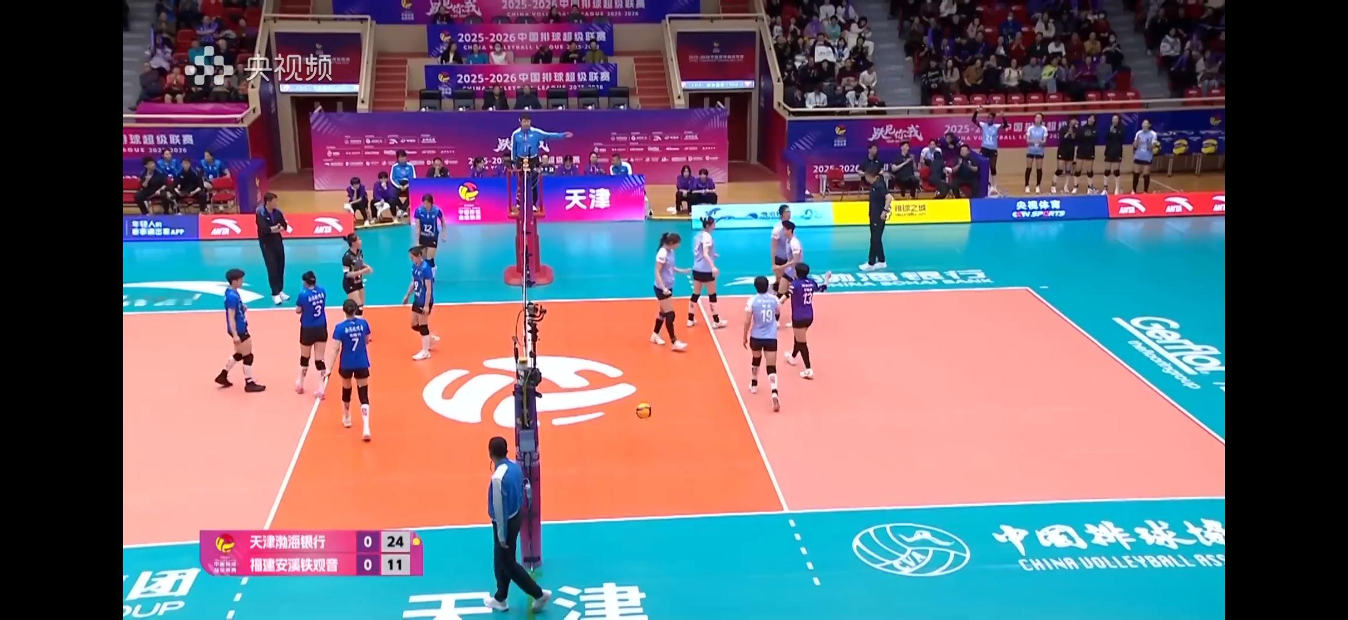第一局天津女排25-11大比分获胜,福建这边的新人加加油啊2025-2026中国女排超级联赛