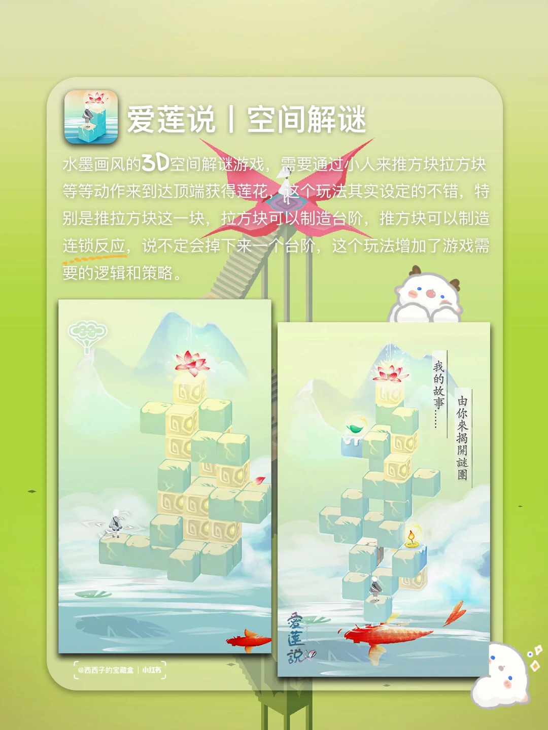 🧸爱莲说丨水墨画风的3D空间解谜,静下心来仔细思考,移动石块帮助莲生拿到莲花!