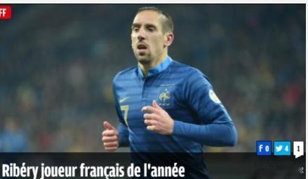 【拜仁核心荣获法国足球先生 坦言做梦都想拿金球奖】北京时间12月10日,据《法国足球》报道,拜仁核心里贝里击败马图伊迪(巴黎)、博格巴(尤文图斯),当选2013年度法国足球先生。这是他继2007年和2008年之后,第三次荣获此奖项。里贝里称目标是追赶亨利,对于金球奖自己做梦都想拿。尤文图斯