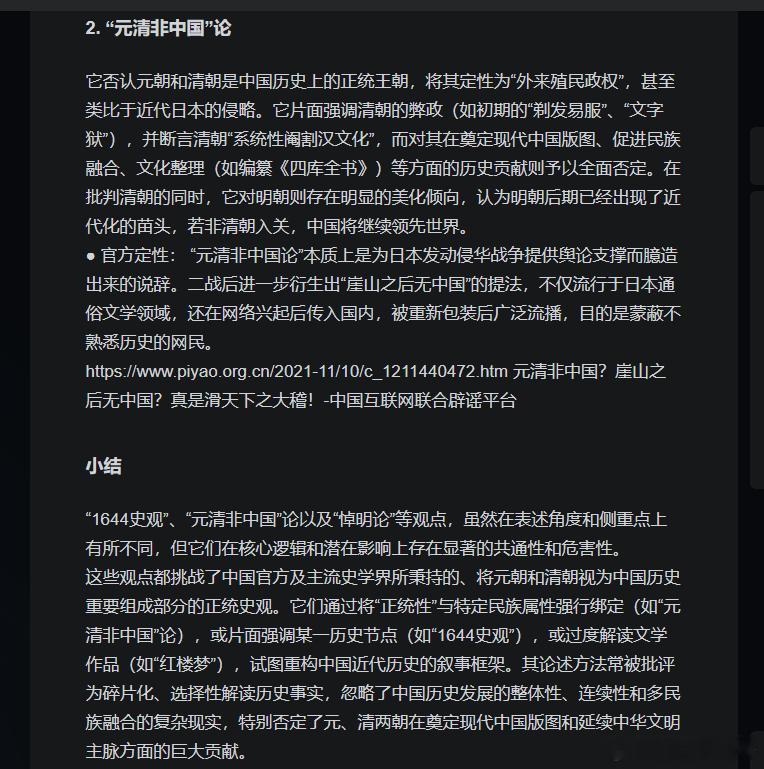 AI总结 盟主拿日本军国主义学者的话术 来暗示 元朝和清朝不是中国政府 这就是带