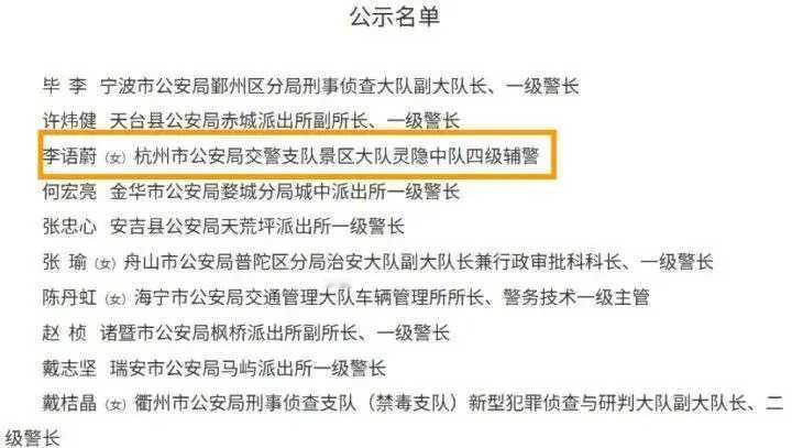 “有困难找李警官!”这句话,早已成为杭州西湖景区周边群众的共识。 12月19日,浙江省公安厅政治部发布《2025最美“浙警”拟宣传选树人选公告》,被网友亲切称为“兔子警官”的杭州市公安局交通管理支队景区大队灵隐中队四级辅警李语蔚成功入围,公示期将持续至12月25日。 这位1998年出生的杭州姑娘,毕业于浙江师范大学学前教育专业,2021年“跨行”成为西湖景区的一名女骑警。去年3月,一段游客随手拍下的执勤视频让她意外走红:甜美的笑容、极具辨识度的嗓音、娴熟利落的交通指挥手势,配上认真负责的工作态度,让“兔子警官”的名号迅速火遍全网。 别看李语蔚长相甜美,她可是能稳稳驾驭500斤警用摩托车的“硬核铁骑”。自入职以来,她扎根路面执勤、应急救助、安全宣教等一线岗位,不仅凭借过硬业务能力快速处置各类事故,更用超强亲和力温暖着每一位遇到困难的群众。 暴雨中,她冒雨疏导交通的视频收获超百万点赞,被央视、新华社等主流媒体聚焦报道;日常巡逻里,她累计参与紧急救助30余次——帮7岁走失女童找到父母,用自备卡通贴纸安抚孩子情绪;护送迷路老人回家,自掏腰包为老人购置食物;遇车主车辆陷入积水路段,二话不说上前推车…… 暖心的举动换来群众的认可,入职至今,李语蔚已收获5面锦旗、12封表扬信,还连续两年被选树为杭州交警优秀TPTU队员,成为同事眼中的“业务标杆”、群众心中的“暖心警官”。 西湖边的风吹过她的铁骑,也吹暖了无数人的心房。这位又美又飒的“兔子警官”,正是杭州这座城市最亮眼的“流量担当”。