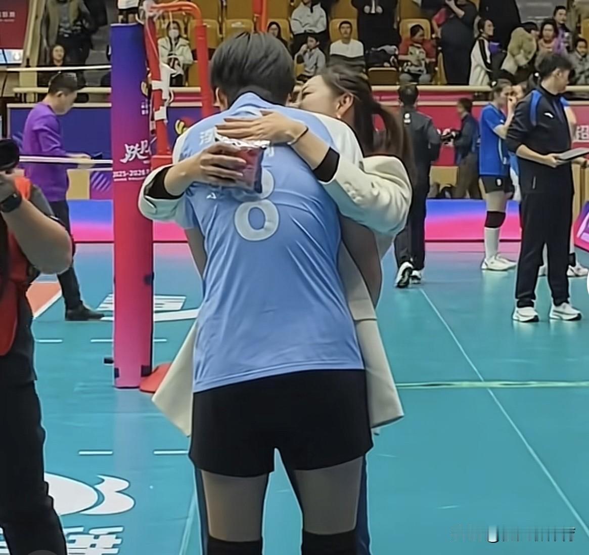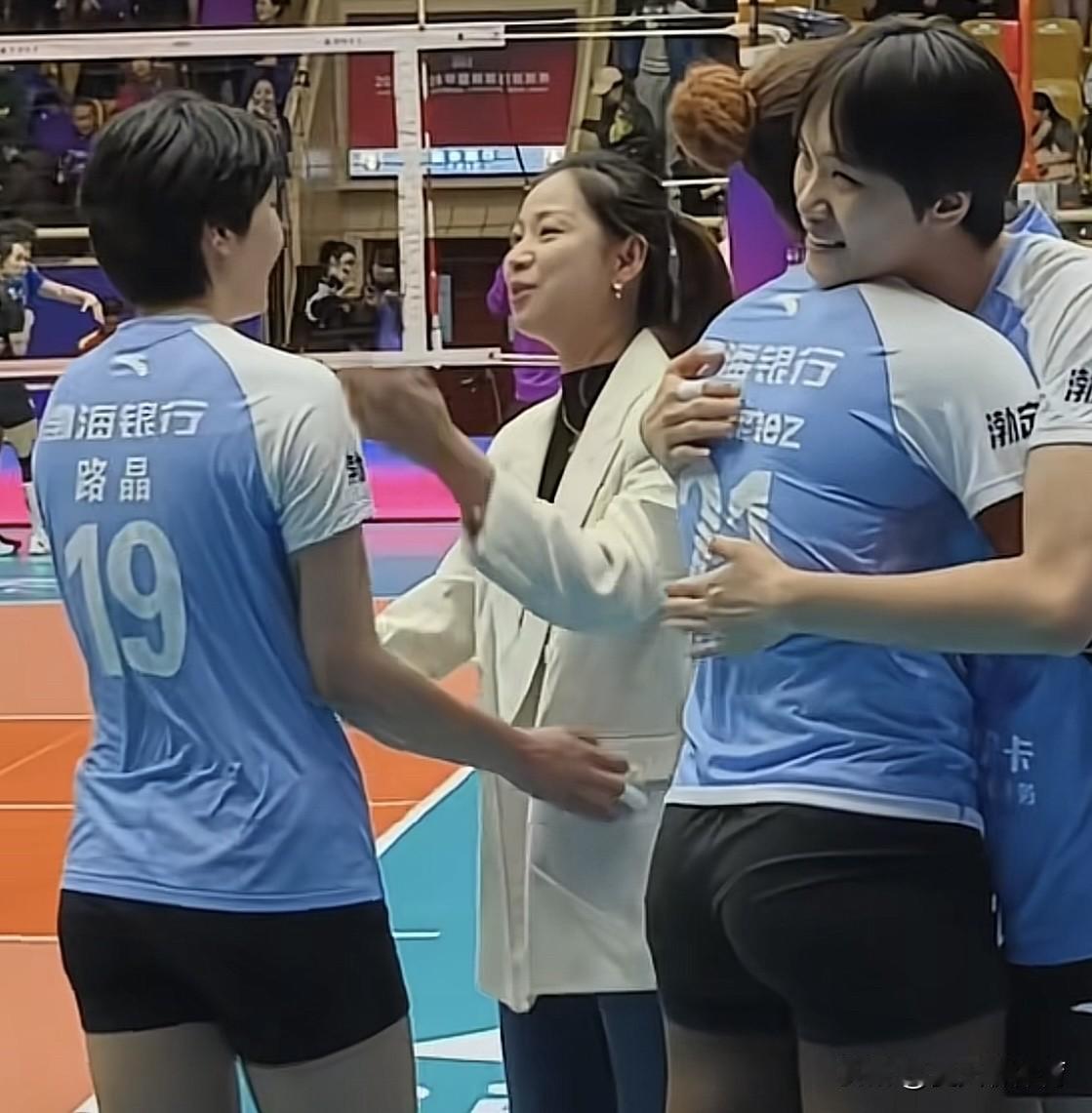 看人家天津女排的领导情商多高,亲自跑到场上安慰队员!昨天晚上主场赢了福建女排后、王茜亲自到现场去安慰首发的几位小将们,一个一个拥抱,鼓励年轻队员!路晶、李响、孙婉鋆、朱航霆这帮人应该都是王茜培养出来,升入天津女排一队的,所以队员们跟王茜更熟悉一点!希望下一场这批年轻队员也能上场,继续掀起青春风暴!