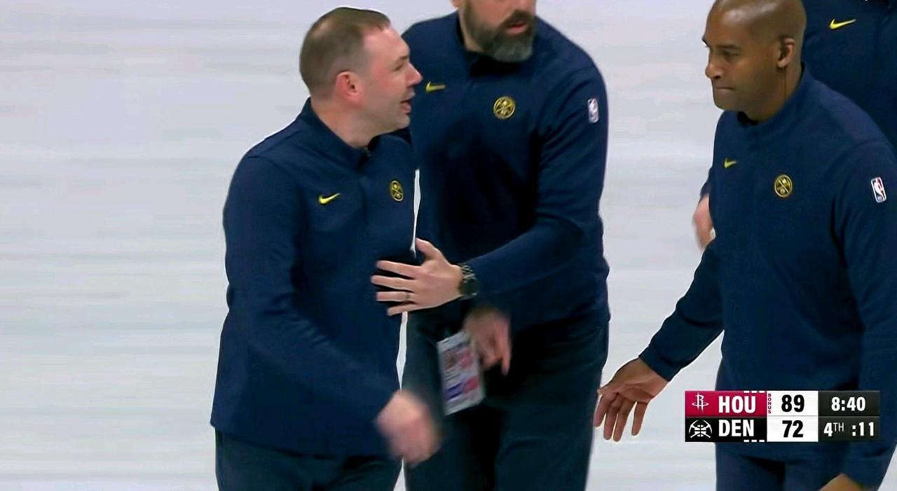 冲动了:阿尔德曼效仿芬奇,狂喷裁判被驱逐!在掘金主场迎战火箭的末节比赛中:约基奇持球进攻,亚当斯贴身防守,球貌似掉了,裁判选择无视,阿尔德曼直接怒了,走进场内对着裁判一顿输出,直接被裁判驱逐出场,杜兰特执行技术罚球,我想阿尔德曼之所以不满裁判就是因为球队自己的主场大比分落后,核心约基奇又早早的陷入了犯规的麻烦,阿尔德曼想用这样的极端方式激励队员!这无可厚非,也不看看你们的队员动作有多大?关键是掘金已经连续赢了火箭两场了,还这么的斤斤计较!人家芬奇是第一节,阿尔德曼末节貌似有点晚啊! 阿尔德曼