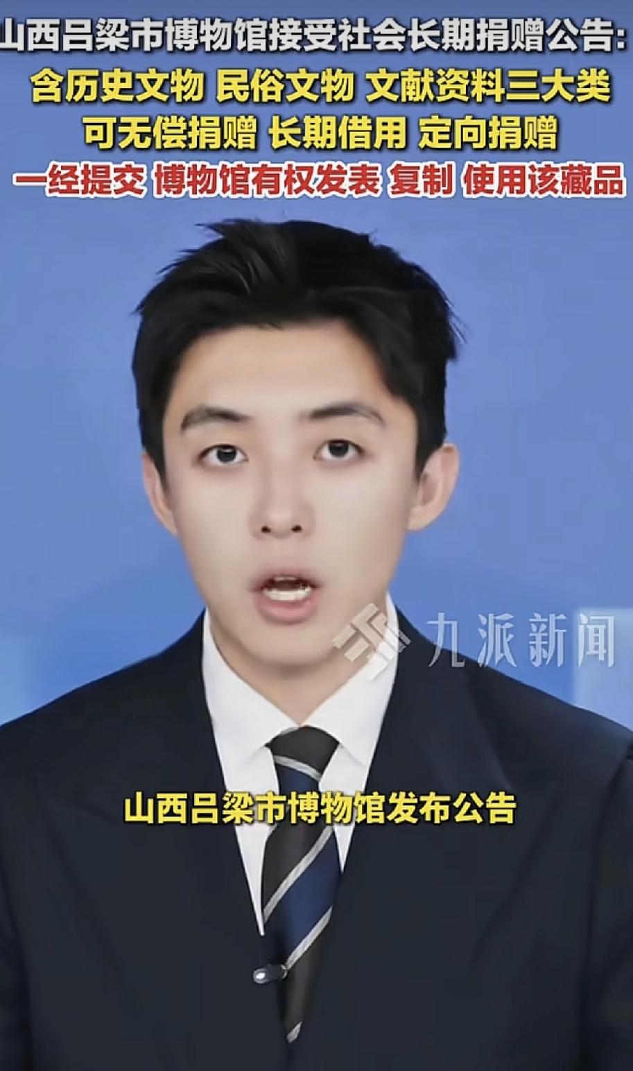 听说了吗?山西一家博物馆发了通报,长期接受社会的捐赠。不管是历史文物,或者是民俗文物,或者是文献资料,都可以捐赠。你也可以无偿捐赠,也可以长期借给他们用,也可以定向捐赠。但是,已经提交,博物馆就有权发表,复制使用这个产品。哎!这是主打的一分钱也想花呀。 所以我也有个建议,我愿意接受长期捐赠。不管是1块的5块的10块的都可以。希望大家踊跃捐赠。