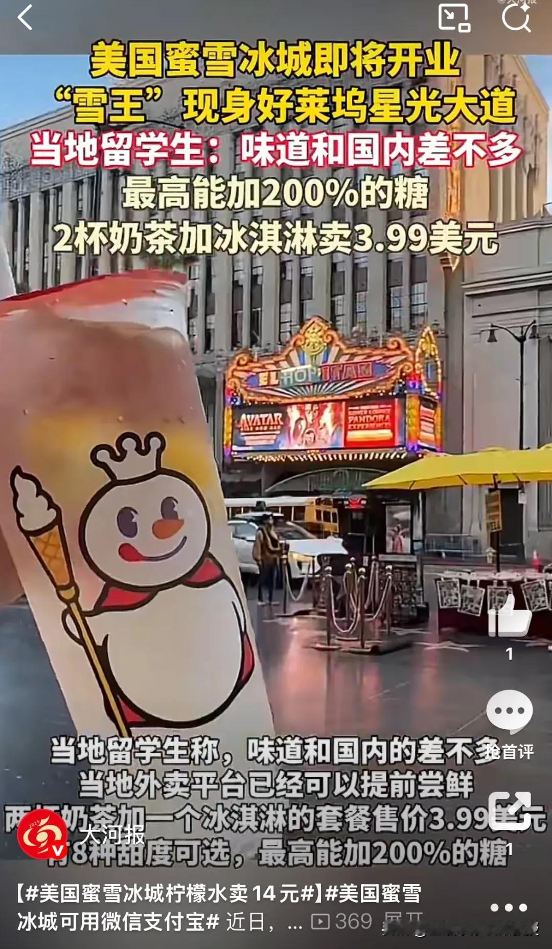 “雪王”今年在战略上“双线出击”确实够果敢!国内试水5元早餐奶、7.9元套餐,中央厨房压低成本,试点店早高峰客流暴涨30%,早餐成了蜜雪冰城的利润第二增长曲线,也带动茶饮的复购率;刚刚开的美国好莱坞首店1.19美元冰淇淋、3.99美元奶茶,开业狂卖800杯,TikTok话题破5亿,成为进军好莱坞的中国第一茶饮。 对比星巴克北美约11.6%的营业利润率,蜜雪靠全球供应链维持50%左右毛利率,但美国的房租和人工是国内3-5倍,要维持好销量热度,除了一贯的低价策略,在营销,品质上也要“更上一层楼”才行,不然就会陷入“赔本赚吆喝”的困境。 蜜雪在今年大胆采取了“国内补场景+海外拓市场”的跨越,”明知山有虎偏向虎山行“的蜜雪确实有胆识,未来就看流量能否转持续销量,与星巴克平分秋色还是可以实现的。