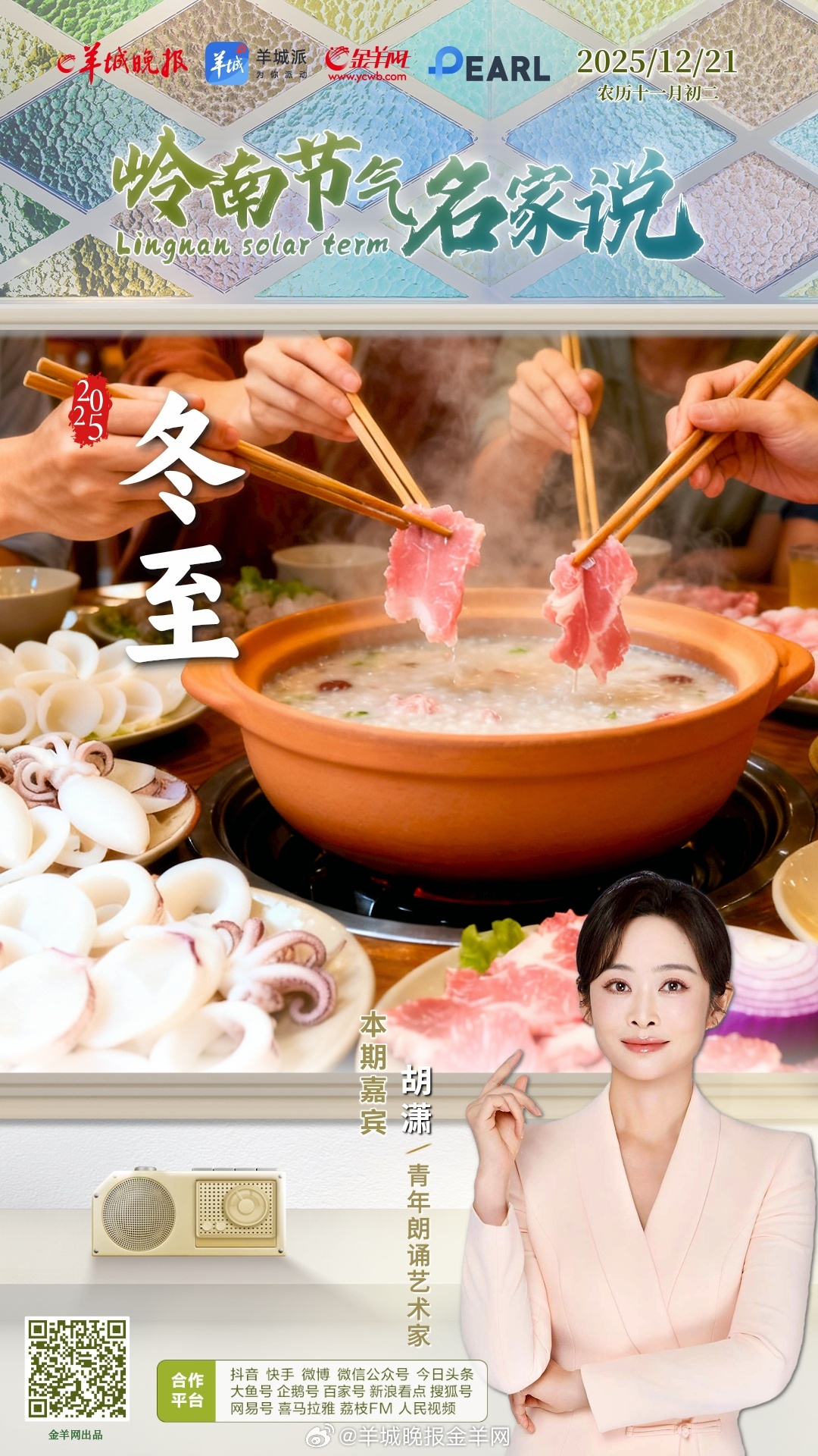 #岭南节气名家说# 岁至#冬至#,围炉而坐。粥底火锅的鲜浓米汤裹着食材本味,家人围坐,言笑晏晏。一碗热粥下肚,岁岁安暖。本期《岭南节气名家说》胡潇带您品味粥底火锅里的冬至团圆滋味~更多精彩报道,请扫码关注羊晚全媒体报道!