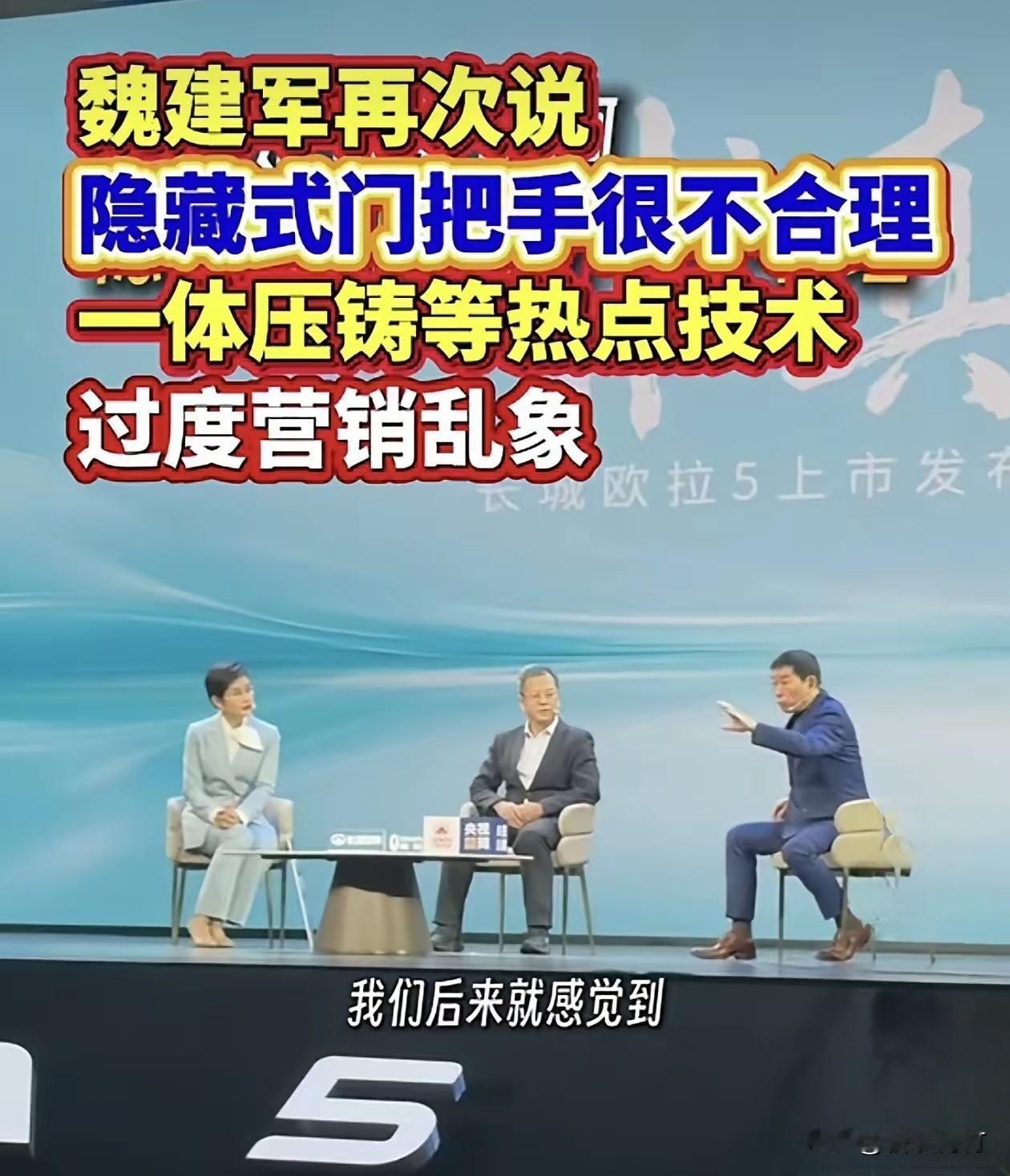 隐藏式门把手、一体化压铸对用户不够友好!长城魏老板又说大实话! 新势力天天宣传的隐藏式门把手降低风阻、科技感强,确实不假,但是魏老板认为相比这些所谓的优点,付出的代价是得不偿失,这个对用户的实际意义不大。 新势力这几年宣传的一体化压铸也被魏老板吐槽,成本高不说,而且对用户也没什么太多好处,一旦撞了,维修成本大幅提高,不像很多厂家宣传的只说优点,不说不好的地方。 魏老板才是人间清醒啊,不跟风,有自己的判断,值得点赞!