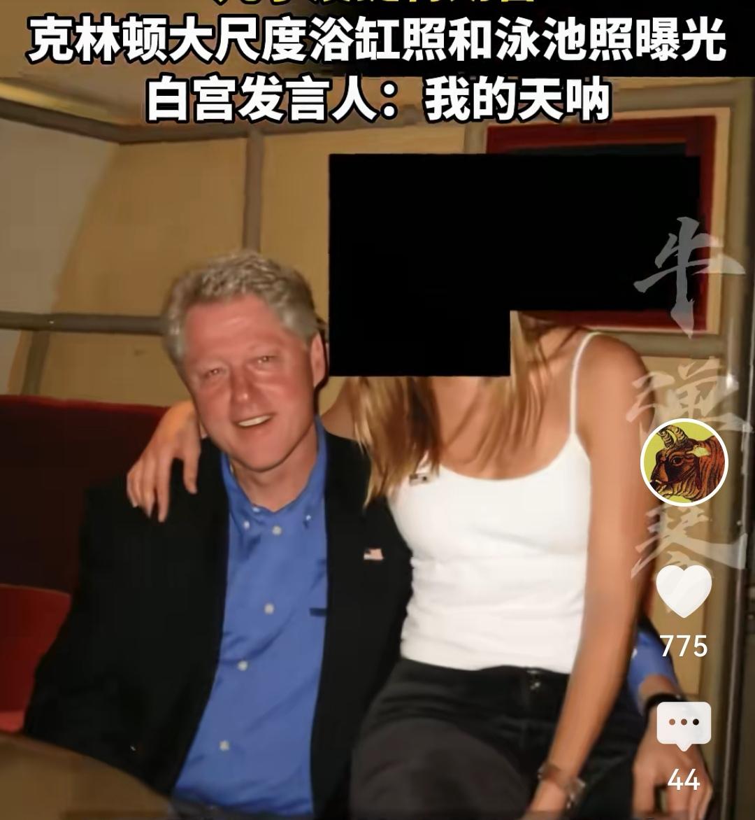 这就是爱泼斯坦案中的前美国总统克林顿。看起来,克林顿不仅仅只有莱温斯基案,而且还有更加劲爆的丑闻,以至于白宫都感到震惊:我的天呐!这就是美国的政界风云,表面上的仁义道德,背后的男盗女娼!