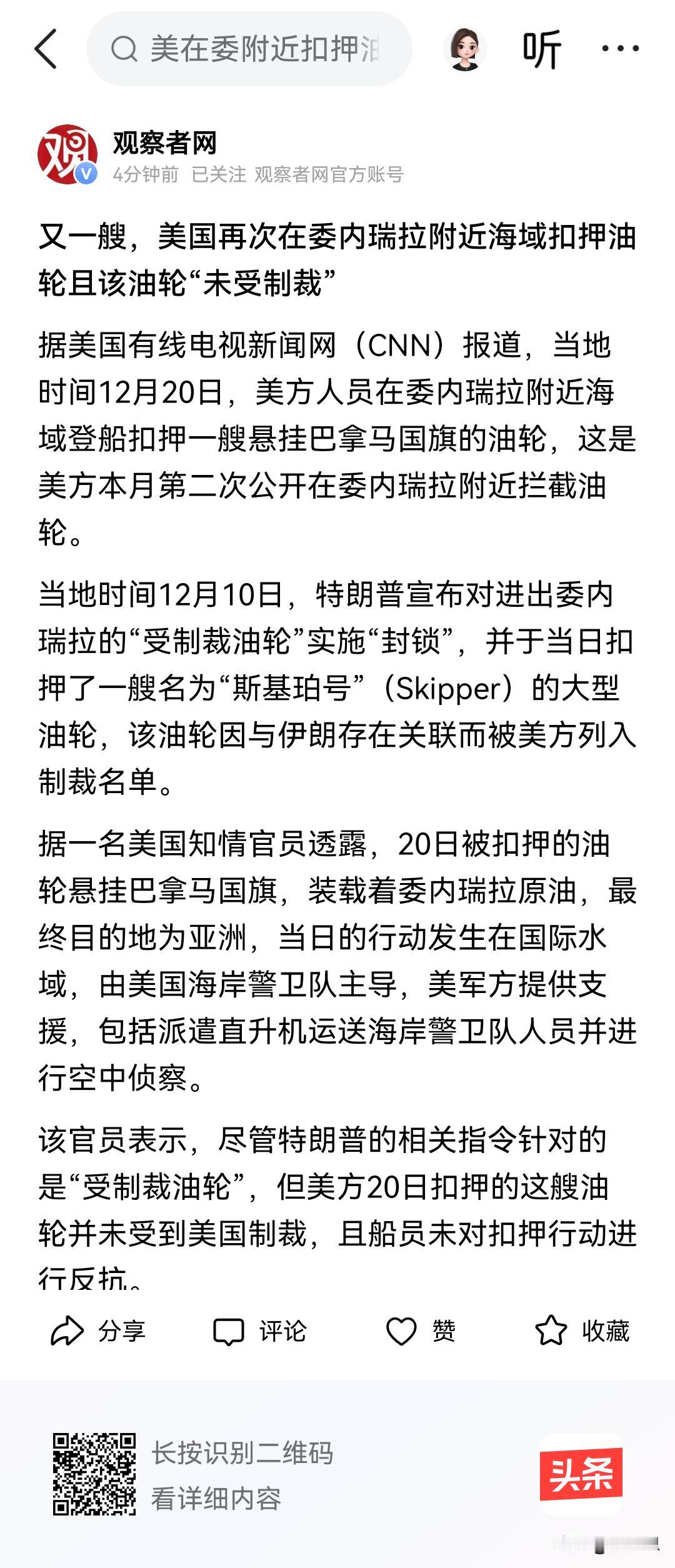 美国再次抢一艘委内瑞拉的石油。现在特朗普政府怎么说呢?先前摆着一副要对委内瑞拉动武,但是他还是不敢下场,,所以现在只能抢石油了,也许他的最终目的就是为了石油是吧?打着打击毒品的旗号,要的是委内瑞拉的石油,但是委内瑞拉国内的石油美国要不到,只能在海上运输的时候抢了。美国还是做起了他们祖先的老手艺,直接做了海盗。