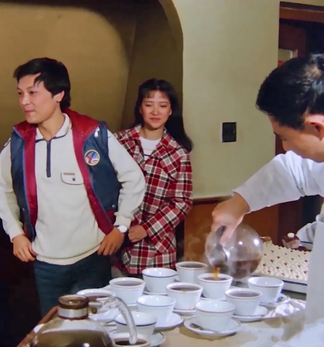 1985年何晴在上海喝咖啡,这在当时真的很时髦,现在看也不过时