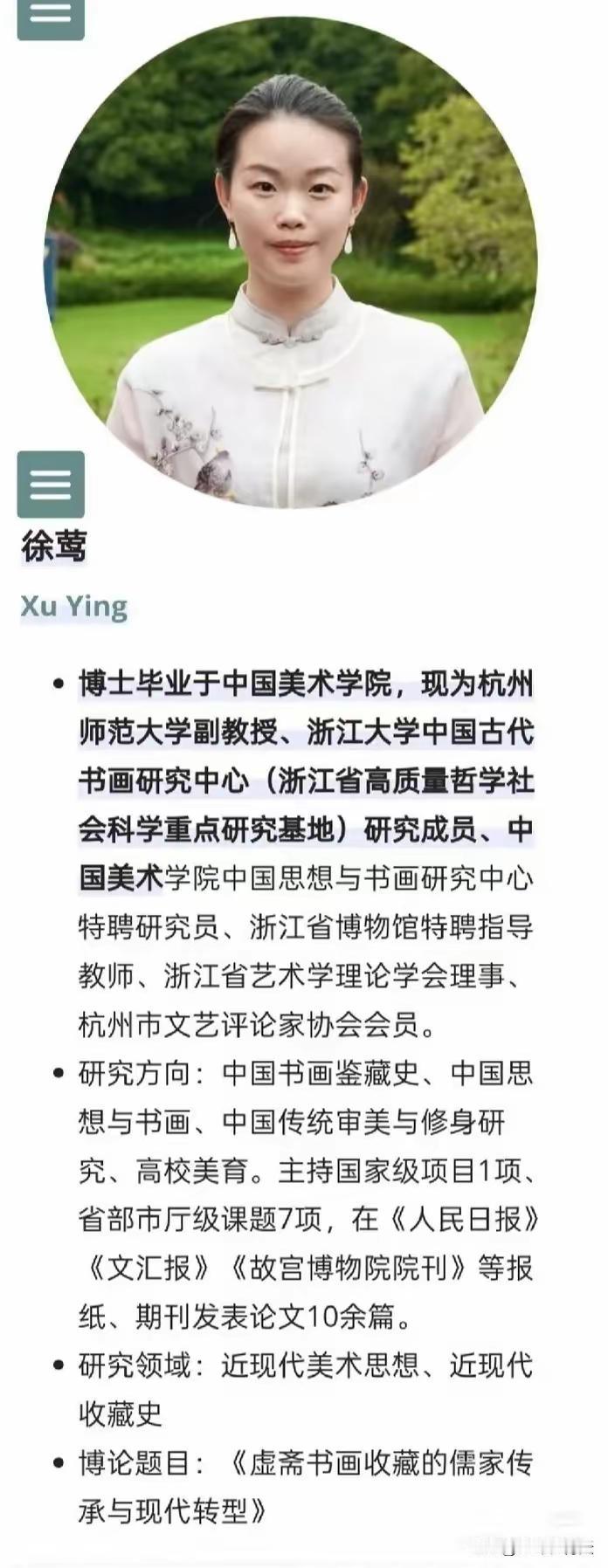 这几天南博案是炒的尽人皆知,现在又蹦出一个徐莺,这个人可了不得,人家本科在杭师范就读生物学,摇身一变,成了中央美院特聘研究员了,更离谱的是,人家还堂而皇之的冒充庞家后人,竟然在南博开了一个庞家画展。 这是谁给她的胆子呢? 很神奇的是,当年南博的前院长叫徐湖平,两个人同姓,有没有关联呢,为啥那个徐莺胆敢冒充庞家后人,还在南博这种国家级别的地方开庞家画展,最后冒充的被揭穿,这徐莺像没事人一样,有点神奇! 有网友直言,这里面的水太深了。 大家对此怎么看?