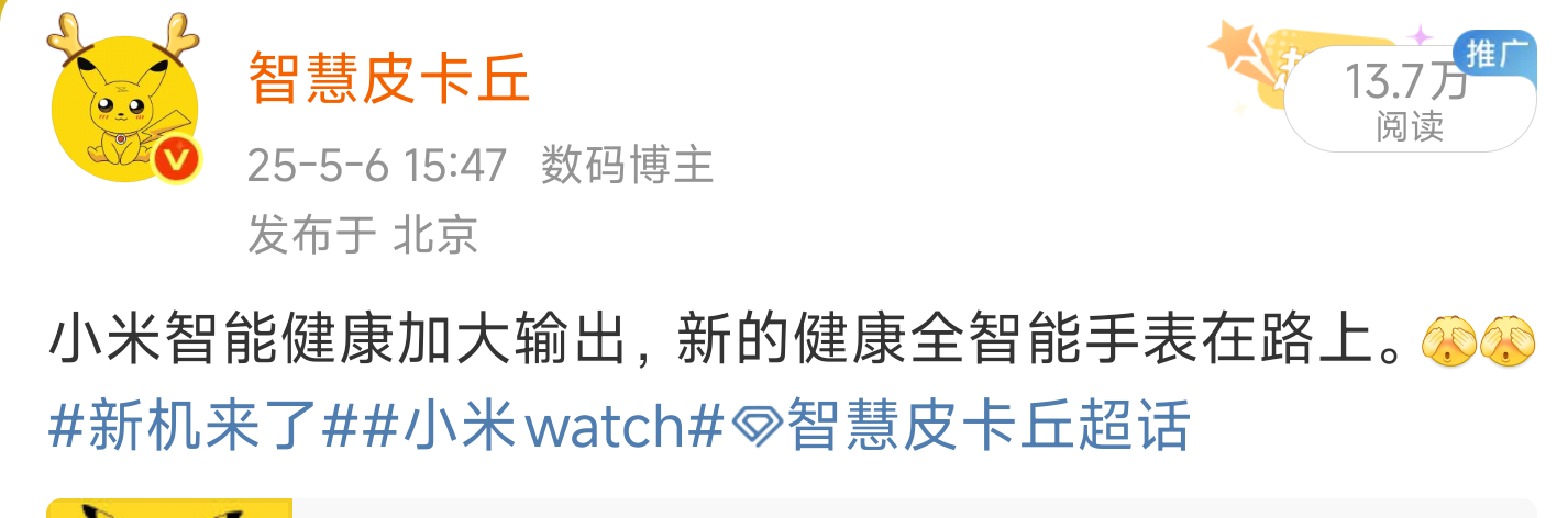 和大家透漏过的小米运动健康实验室官宣成立了,赋能小米可穿戴产品,新手表主打智能健康,可以期待一波。新品驾到小米17ultra智慧皮卡丘