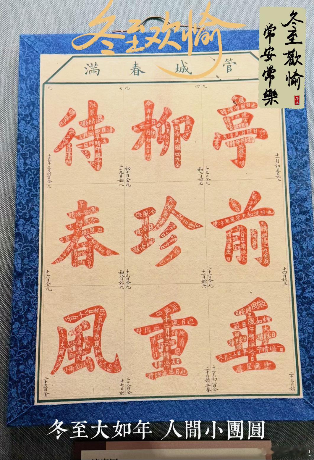 历史知识 明代《帝京景物略》载:“冬至日,画素梅一枝,为瓣八十有一。日染一瓣,瓣尽而九九出,则春深矣,曰九九消寒图”。不过后来更有名的是“亭前垂柳珍重待春风”,每日一笔,九九八十一天后,河冰融化,岸柳发芽,满是生机的春天又到了今日冬至