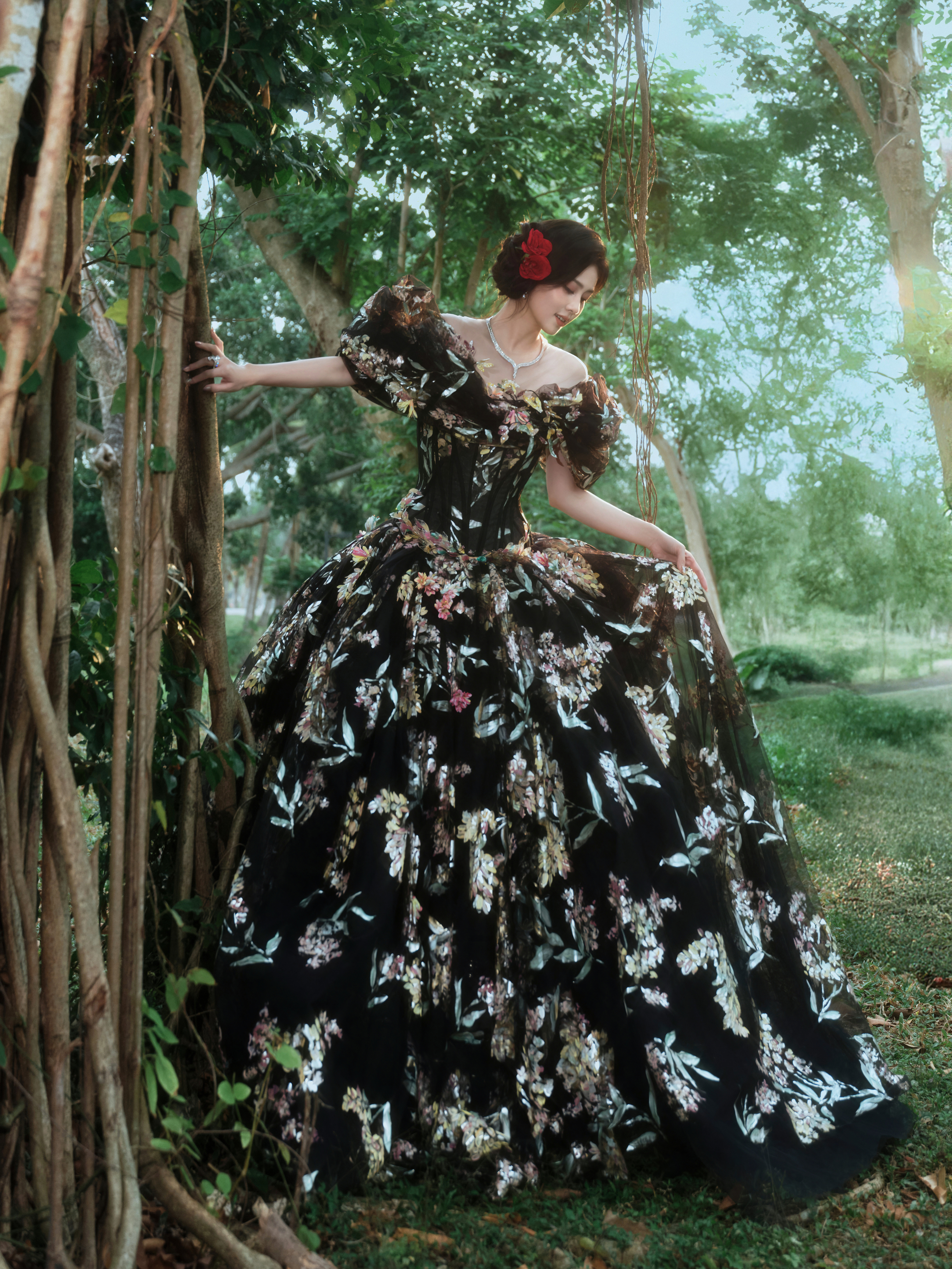 白鹿星光大赏红毯造型!黑夜王国最美的女人,童话故事里的公主!好美!好温柔!好典雅!星光大赏红毯白鹿黑色亮片高定
