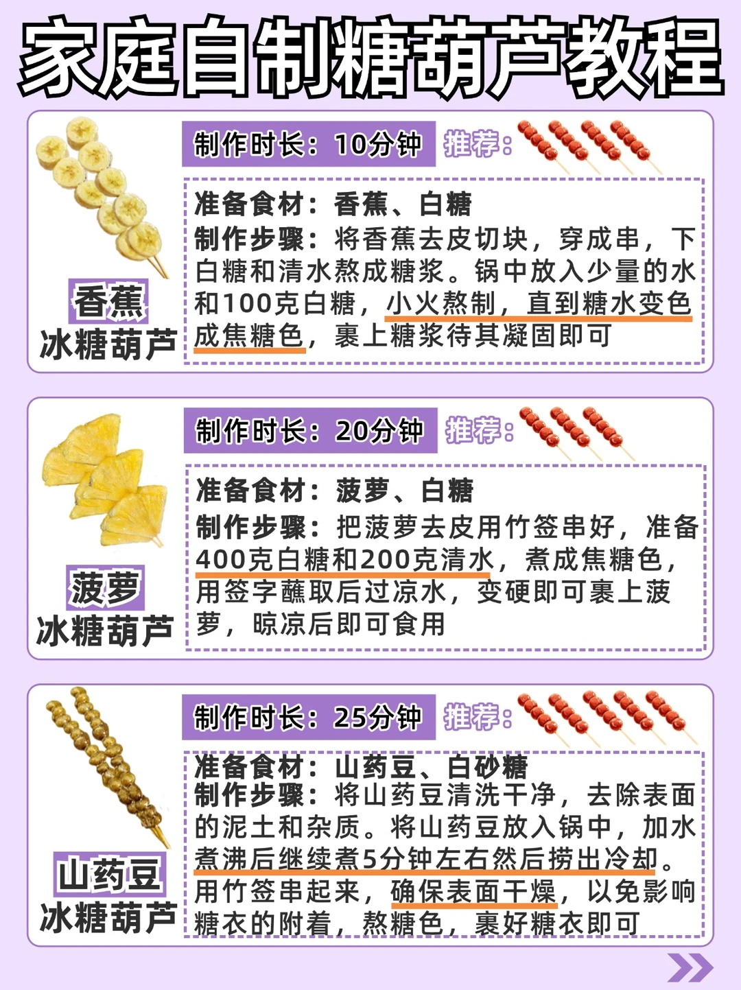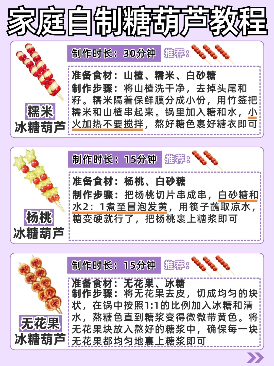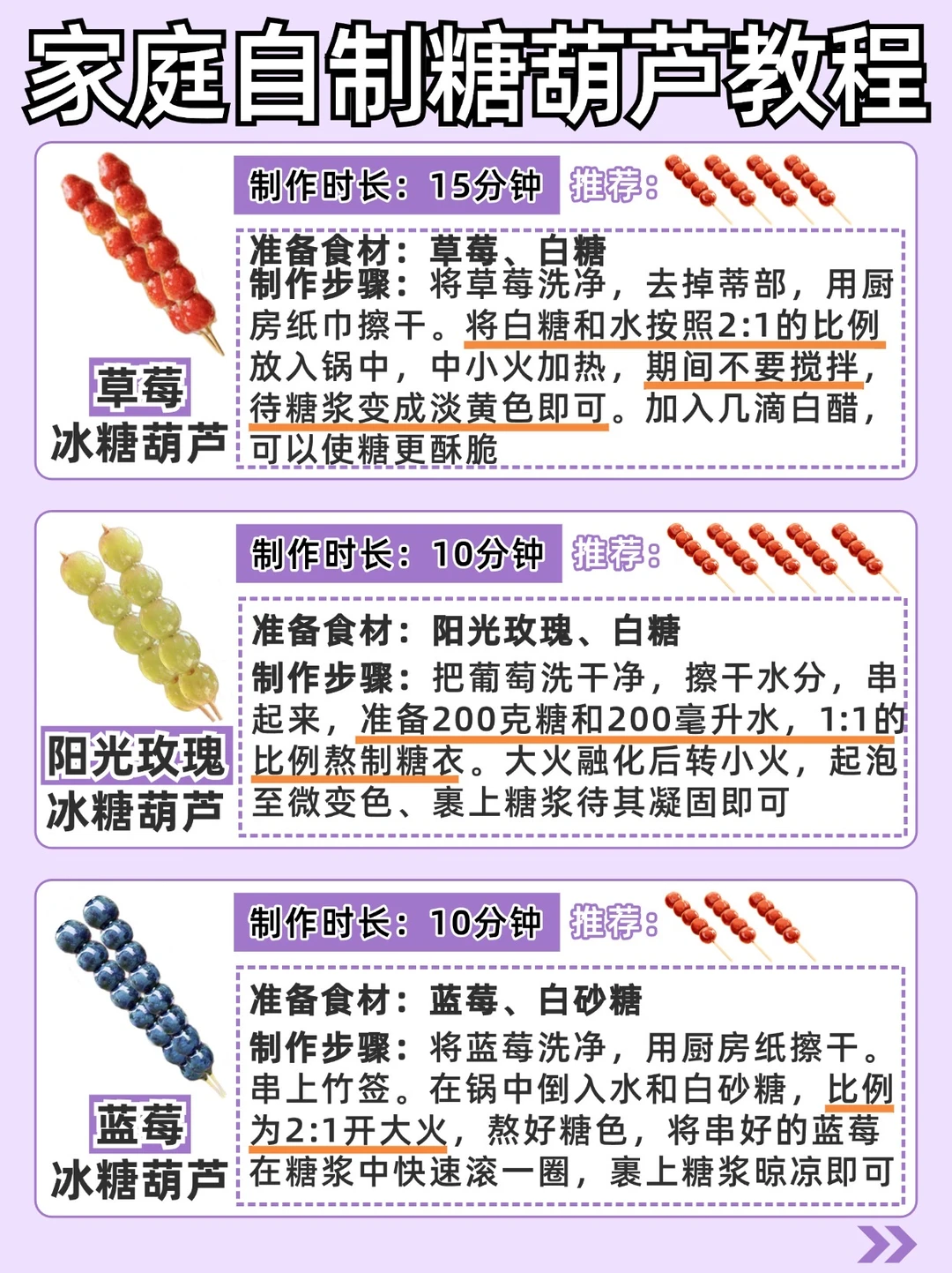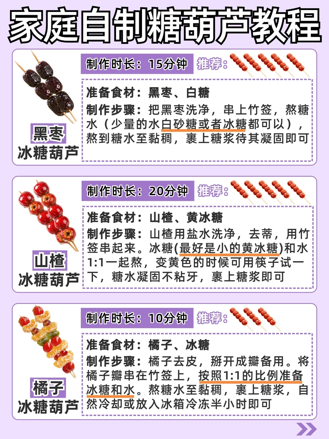 今天给大家整理一期家庭自制糖葫芦合集🔥内附糖葫芦熬糖配方