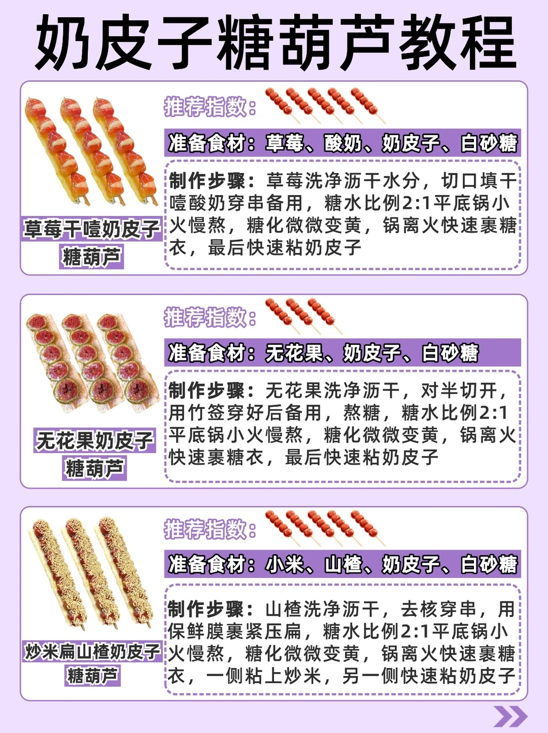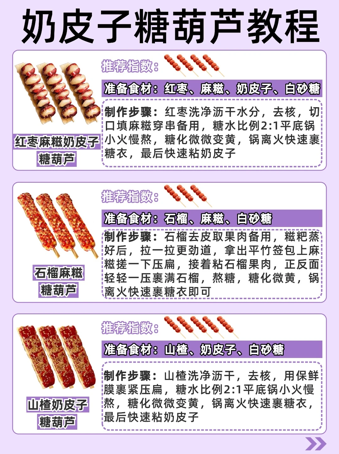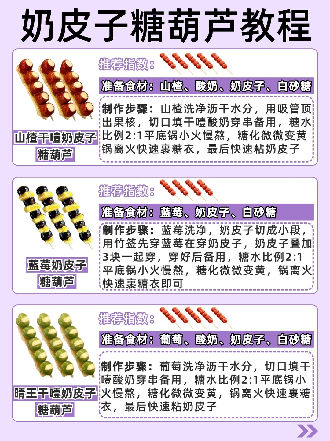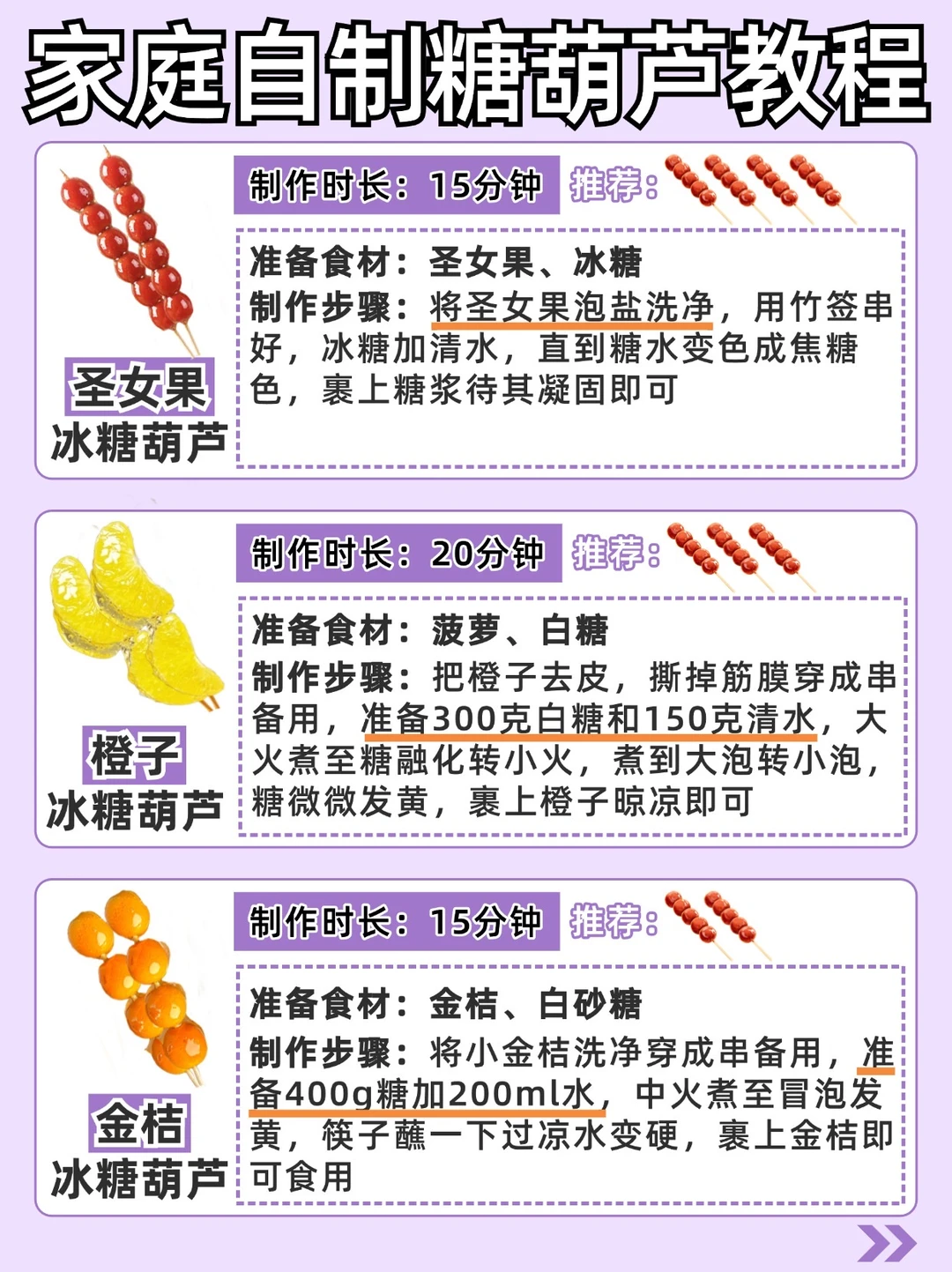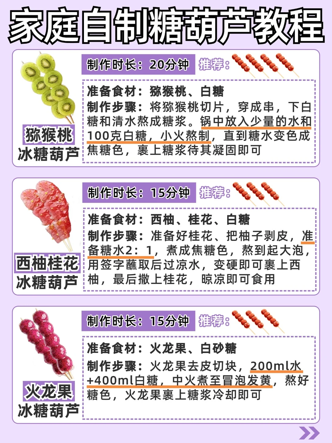 ☃️冬季家庭自制糖葫芦教程来喽[派对R][派对R]都是日常常见的水果🍓在家十分钟就能轻松搞定做法超简单!内附今年超火的热门奶皮子糖葫芦不化糖熬糖配方㊙️!爱吃糖葫芦的宝子赶紧🐎住~