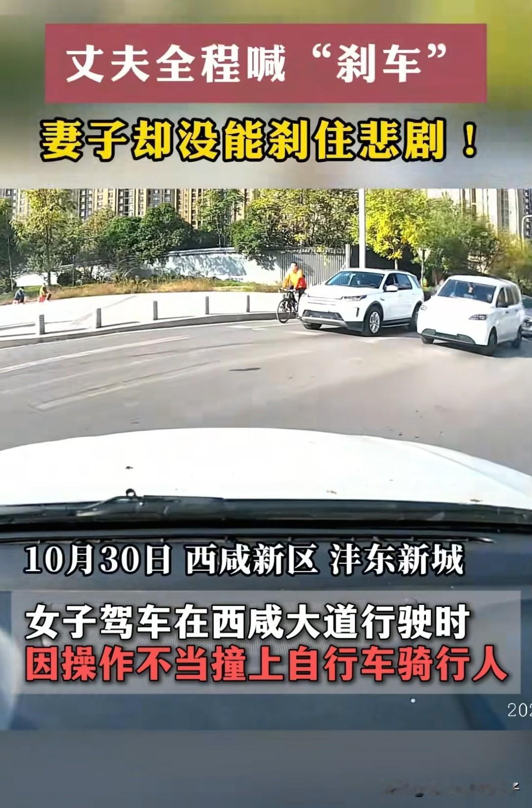 坐在副驾的丈夫出发点是好的,想要让妻子踩刹车,但他方法错了,越这样喊只会司机更紧张,反而打乱了操作节奏,应该直接说踩左边踏板的。 看这女司机的操作明显不熟练,都开到斑马线上去了,大概是刚拿驾照没多久,连刹车和油门都没分清楚,丈夫也是心大,在市区来练车。 看轿车的速度也不快,骑自行车的男子估计也没想到能撞上来,还刚好卡在了石柱子上,这夫妻俩真是人才,一个敢教,一个敢开,只是可怜了无辜的路人!