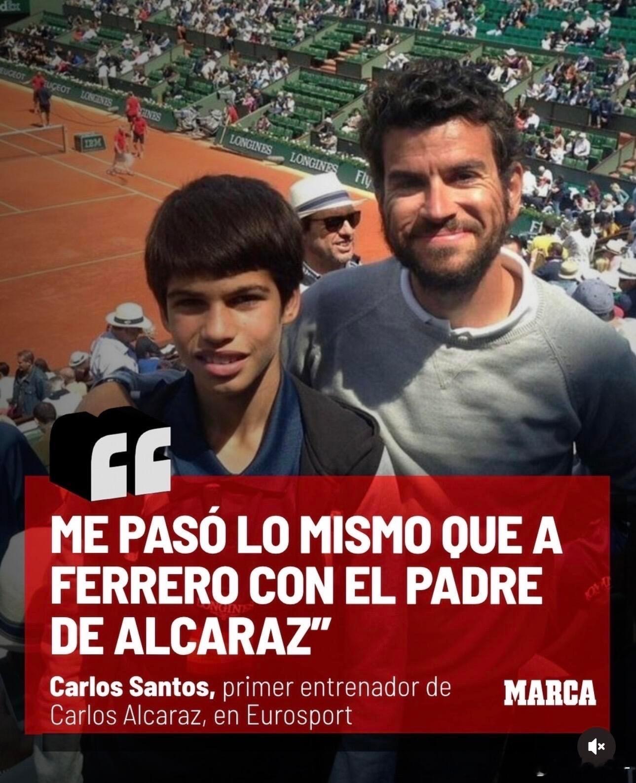 阿尔卡拉斯费雷罗结束合作,阿卡的启蒙教练表示:费雷罗遇到同我一样的情况!📰来自马卡报卡洛斯·桑托斯是卡洛斯·阿尔卡拉斯的首任教练,现任职于 Eurosport体育台。图1️⃣“费雷罗和我遇到了同样的情况,跟阿尔卡拉斯的父亲有关。”图2️⃣“胡安·卡洛斯(费雷罗)可能提出了一些条件,而(阿尔卡拉斯的)父亲不愿意接受,也没有让步,就像当初对我那样。”图3️⃣“掌控一切的是父亲,阿卡与此无关。”图4️⃣“下一任教练必须是一个愿意住在穆尔西亚这里,并能为他创造一切便利条件的人。”图5️⃣“卡洛斯靠自己就行,他拥有出色的网球天赋,不依赖任何人。”阿尔卡拉斯网球talking大会