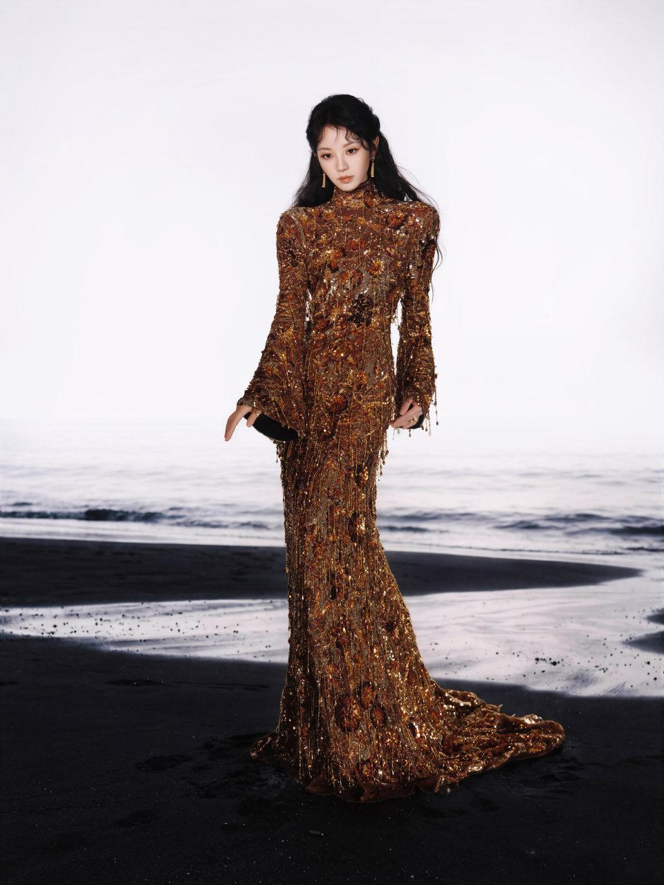 田曦薇金色流苏裙真的绝了,每次造型都让人眼前一亮