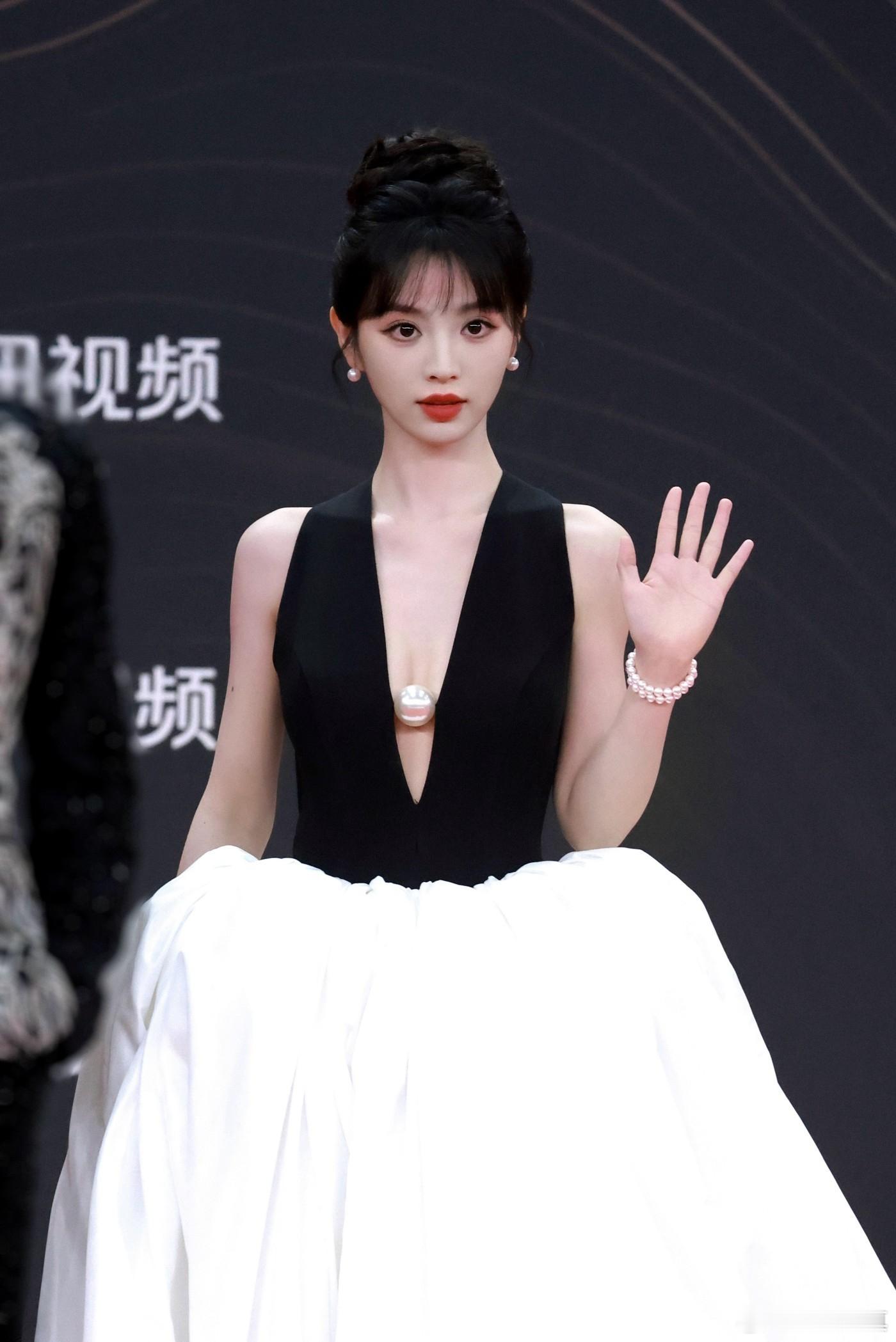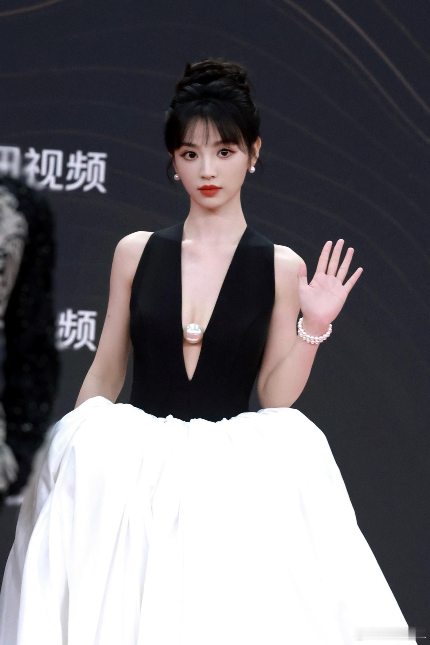 田曦薇亮相腾讯视频星光大赏红毯:深V礼服夹珍珠腾讯视频星光大赏