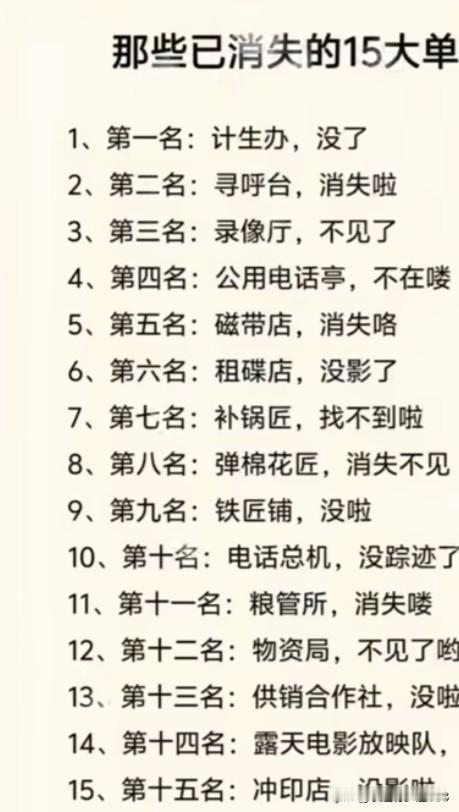 这是不是已经都消失了的东西? 感觉计生办、供销社好像都还有。 弹棉花的也有,无非就是难找一些。 大家说呢?