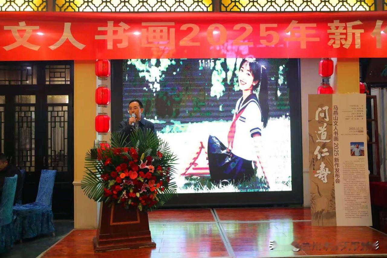 贺马燕山仁寿山书画新作展开幕 陇右初冬聚俊贤,寿山墨韵染晴川。 武威雅士挥毫处,文脉长流续古篇。 研习二王承法道,师宗石涛拓新天。 诗融画境清逸远,笔落烟霞意韵绵。 百侣临轩同赏艺,尺幅藏珍醉众仙。 桥连南北传雅韵,文旅同心助梦圆。 问道仁寿书香盛,千秋笔墨润心田。 (兰州军旅天下摄影)名山大川诗画展 东岳山书画笔会 平川堂书画 马南坡画展 张伟平山水画 玄武山书画 青云轩书画
