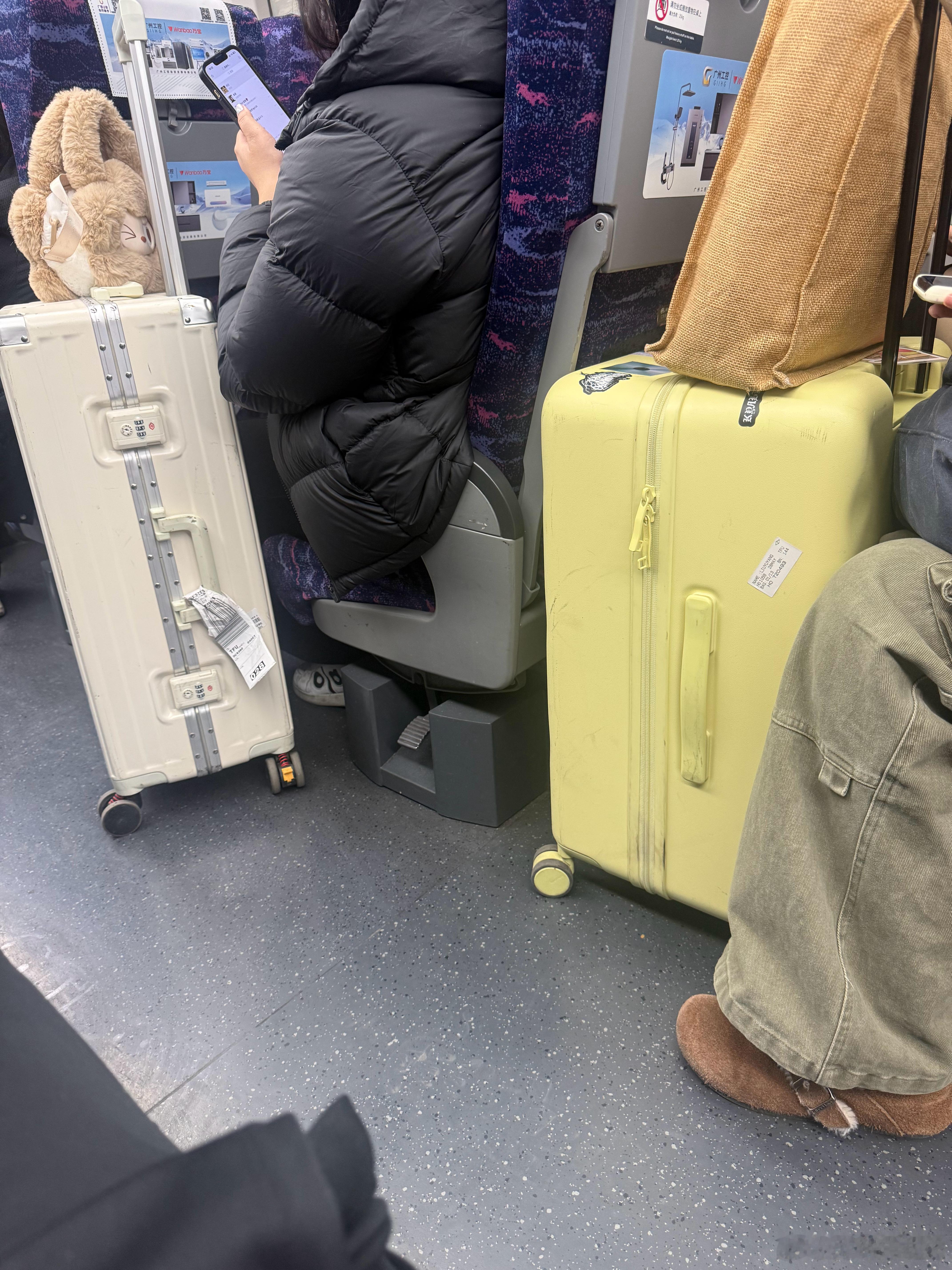 理性探讨,乘高铁的时候,这种大件行李箱该不该放在座位前面?