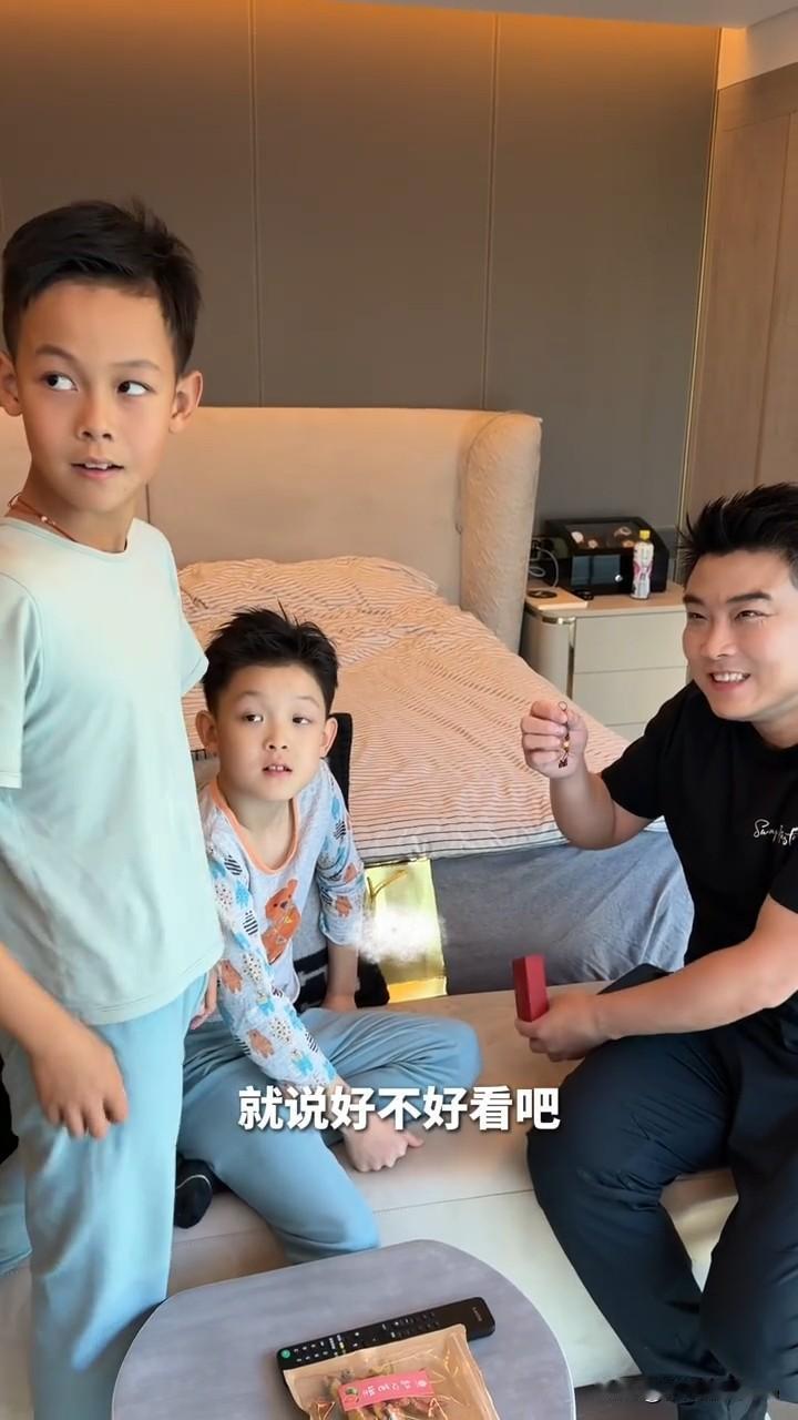 近日,王皓妻子闫博雅更新生活vlog,并配文说道:“爸爸的生日礼物,螺螺给爸爸准备的大大的惊喜。” 原来王皓教练这个月刚满42岁,小儿子螺螺计划用自己存的零花钱给爸爸买一个礼物。 螺螺先和姥姥商量买什么礼物,他说自己有“1万块”零花钱,其实只有1100元,因为他数错了。 最终,螺螺决定给爸爸买个“大金猪”,但理想很丰满,现实却很骨感。 一家四人走到商场一看,1100元只能买个小的,重量只有1克左右。总计花费1316元,哥哥补了216元,哥俩感情真好。 等王皓到家后,两个儿子赶紧把礼物送给爸爸。王皓把小金猪挂在了手机上,还真的很好看。 王皓的两个儿子都很帅,很好的继承了爸爸妈妈的优秀基因,大家觉得呢?