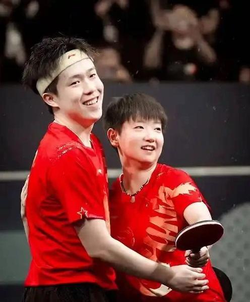 照片中的王楚钦面带微笑,而身旁的那位美女则巧妙地用双手摆出了一个“心”形。