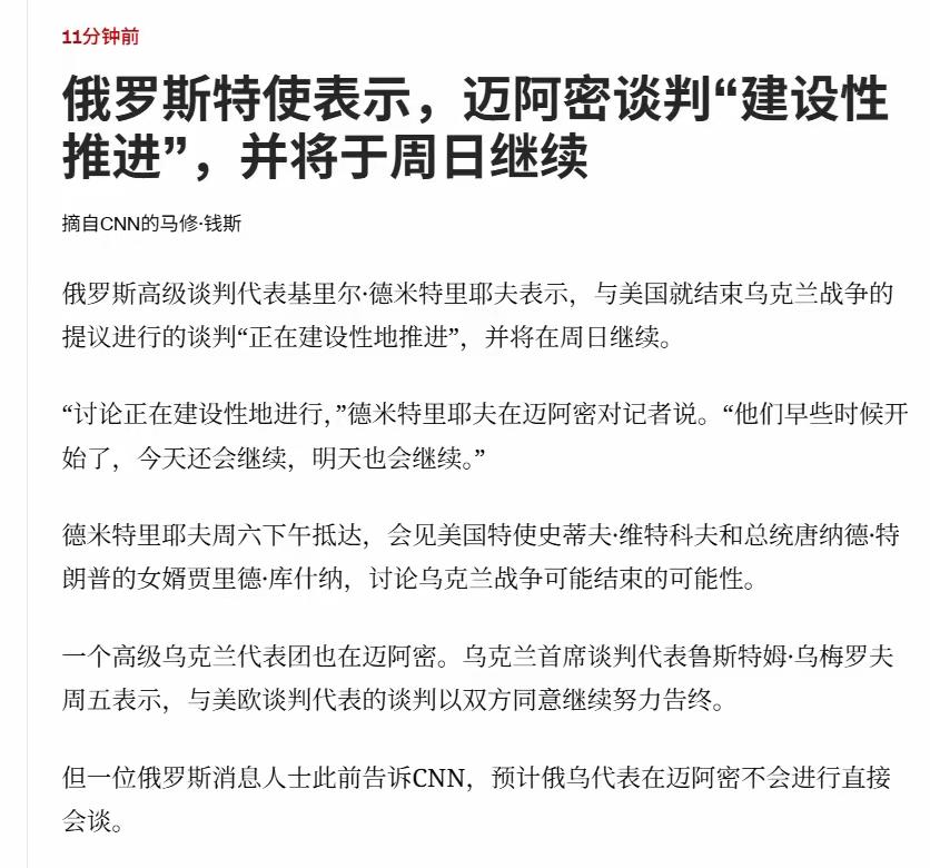 当俄乌美在迈阿密的谈判传出“富有建设性”的信号时,欧洲大陆的“恐俄症”却依旧高烧不退,这种反差背后藏着比战场更复杂的博弈。12月20日起,俄总统特别代表德米特里耶夫与美方特使威特科夫、库什纳等人在美国迈阿密展开磋商,连续两日的会谈被俄方明确界定为“建设性推进”,标志着俄乌冲突三年半后和平进程出现新动向 。 有趣的是,就在谈判进行时,美国国家情报总监加巴德12月20日在X平台直接点名路透社,称其“普京计划占领整个乌克兰并染指欧洲”的报道是“虚假信息与宣传”。她援引美国情报系统评估直言,俄不仅无征服乌克兰的能力,更在极力避免与北约直接冲突,这类叙事不过是“兜售恐慌”,为军事介入铺路。 可欧洲似乎不愿接招:一边推进第19轮对俄制裁,一边渲染“俄将瞄准波罗的海国家”的焦虑,即便欧盟对俄天然气依赖已降至19%,仍执着于能源脱钩 。其实这哪里是恐俄,更像是借“威胁”为军费扩张、政治动员找借口——毕竟美国都已把谈判“皮球”踢给俄罗斯,欧洲却还在抱着过时的恐慌不放 。和平的机会就在眼前,若继续被虚假叙事裹挟,最终牺牲的只会是欧洲自身的安宁。