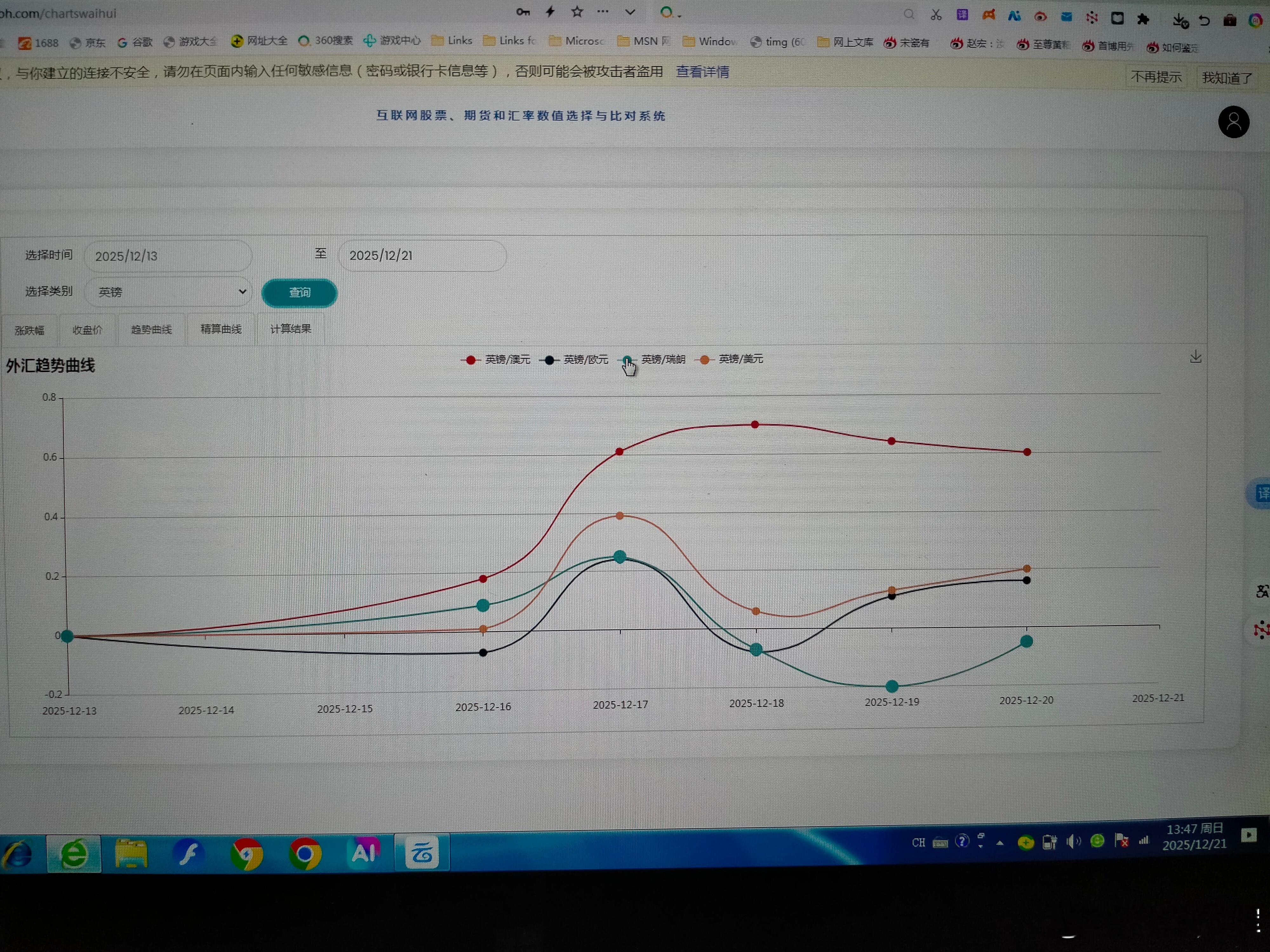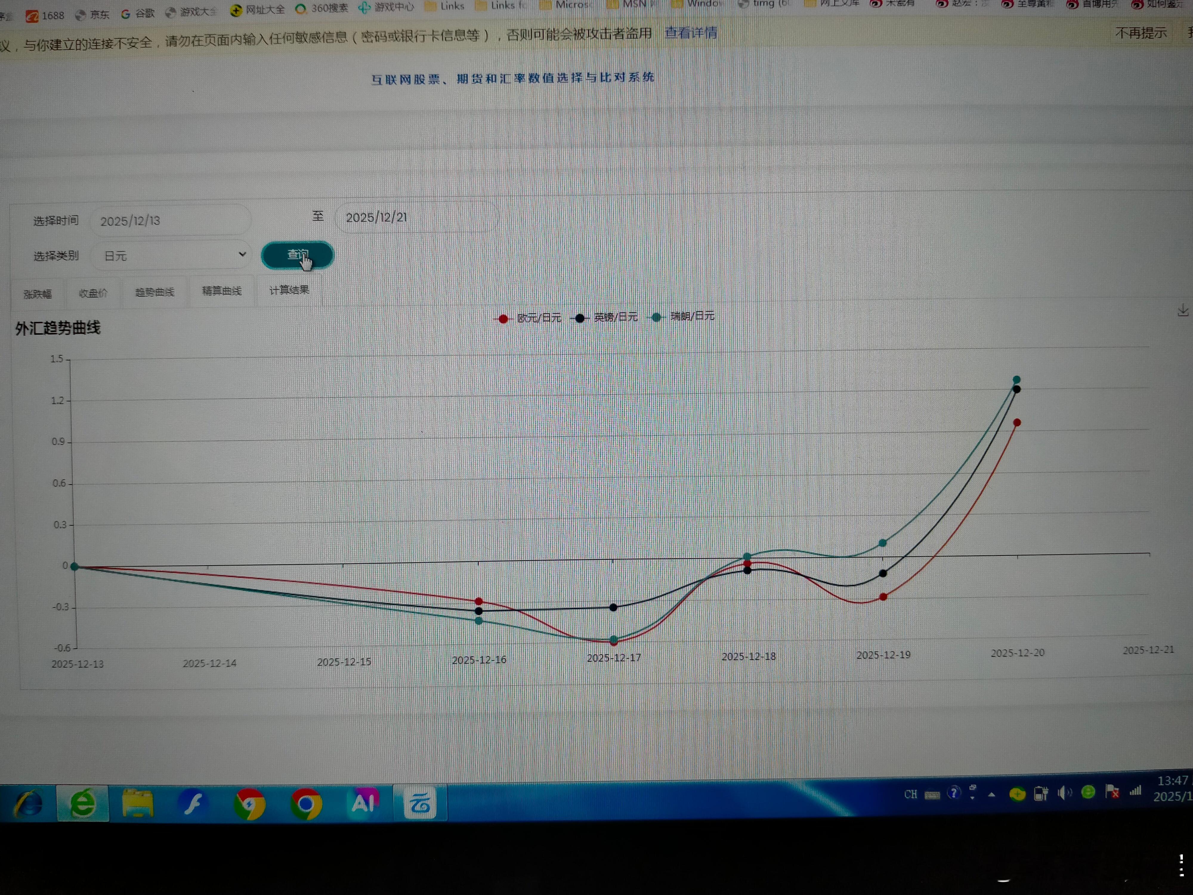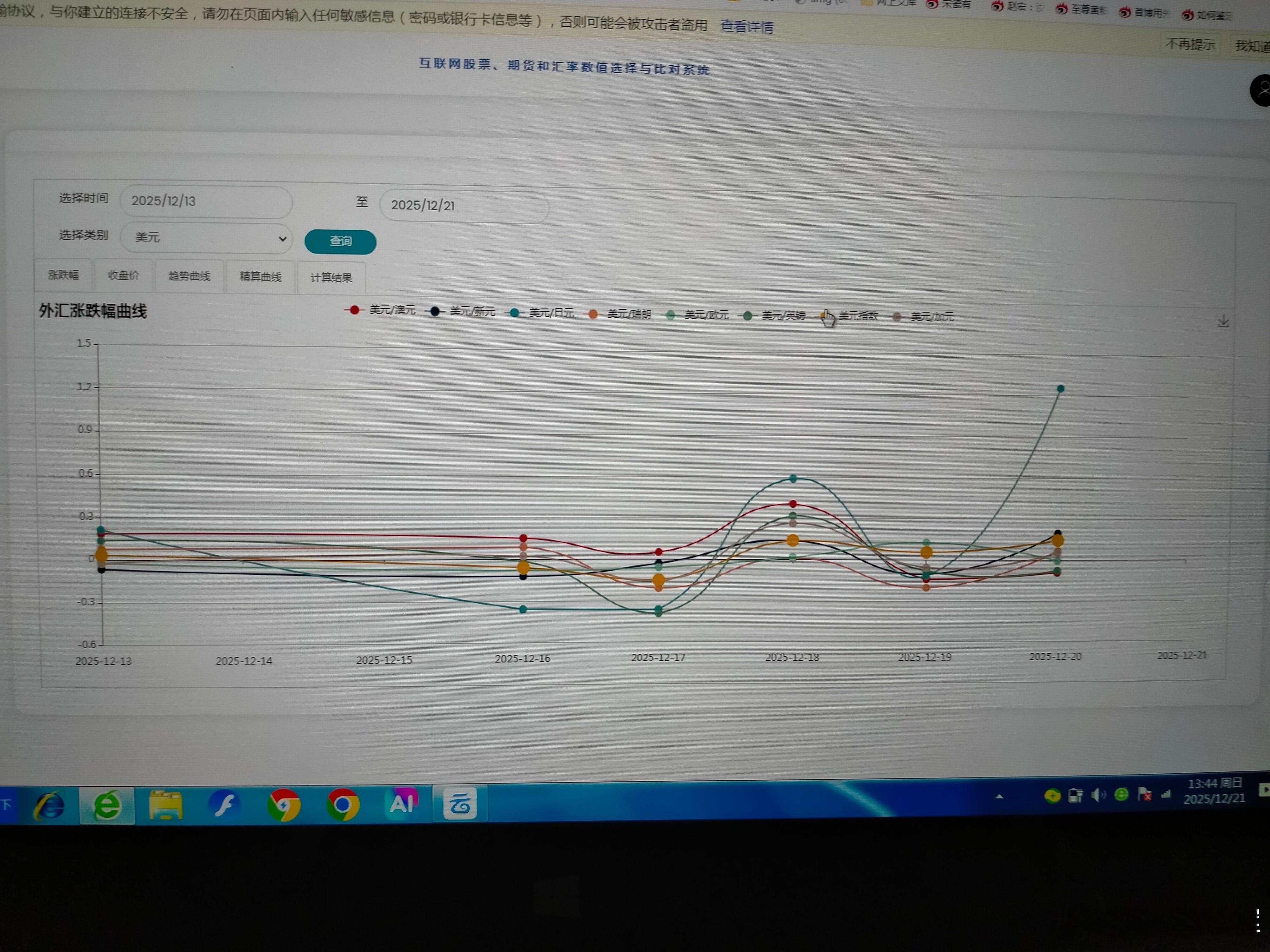 本周主要汇率走势 本周英镑和瑞郎最强,日元最弱。美元指数比上周收盘小幅上涨。 图一是美元本周的涨跌幅曲线,涨多跌少,但都是小涨小跌,所以,本周涨幅有限,图二是趋势曲线,除了兑日元涨幅大一点外,兑其他几个主要币种都是小涨小跌。看看美元是不是启稳了吧? 图三是澳元本周的趋势曲线,澳元本周比较弱,除了兑日元上涨外,兑其他几个主要币种都是下跌的,估计下周会延续一下吧? 图四是欧元本周的趋势曲线,图五是英镑本周的趋势曲线,图六是瑞郎本周的趋势曲线。英镑和瑞郎本周继续比较强,从本币角度看,相互间都是下跌的,估计差不多该转换了吧?特别是瑞郎,强势也延续了一段时间了。只是不知道是美元,还是欧元接强势的棒? 图七是兑日元的趋势曲线,日元继续走弱。 图八是兑加元的趋势曲线,加元也比较弱。 图九是正向和反向态势图,日元在低位区域,估计不敢接吧?美元也基本上在低位区域,如果启稳了,还是比日元强吧?