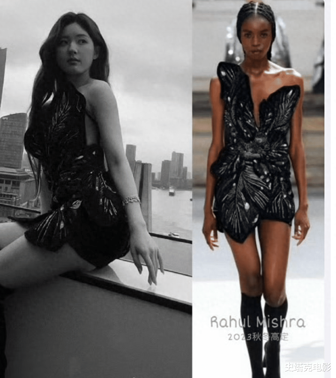 在近日的活动中,有网友发现了她又穿上了一套黑色高定。
