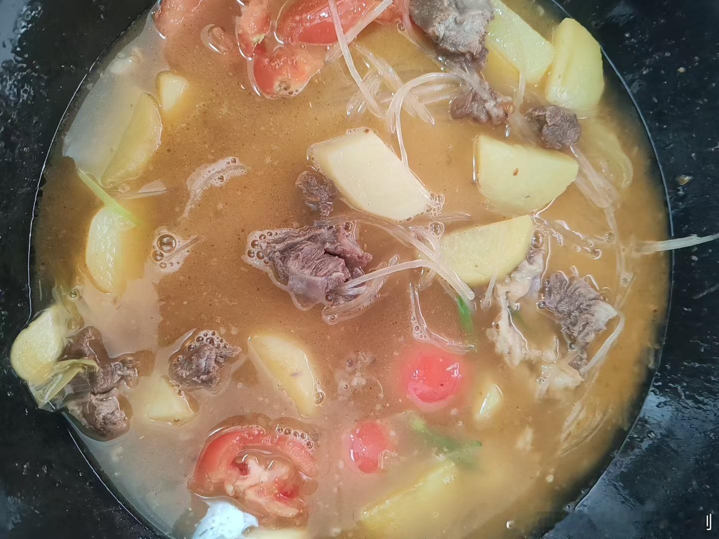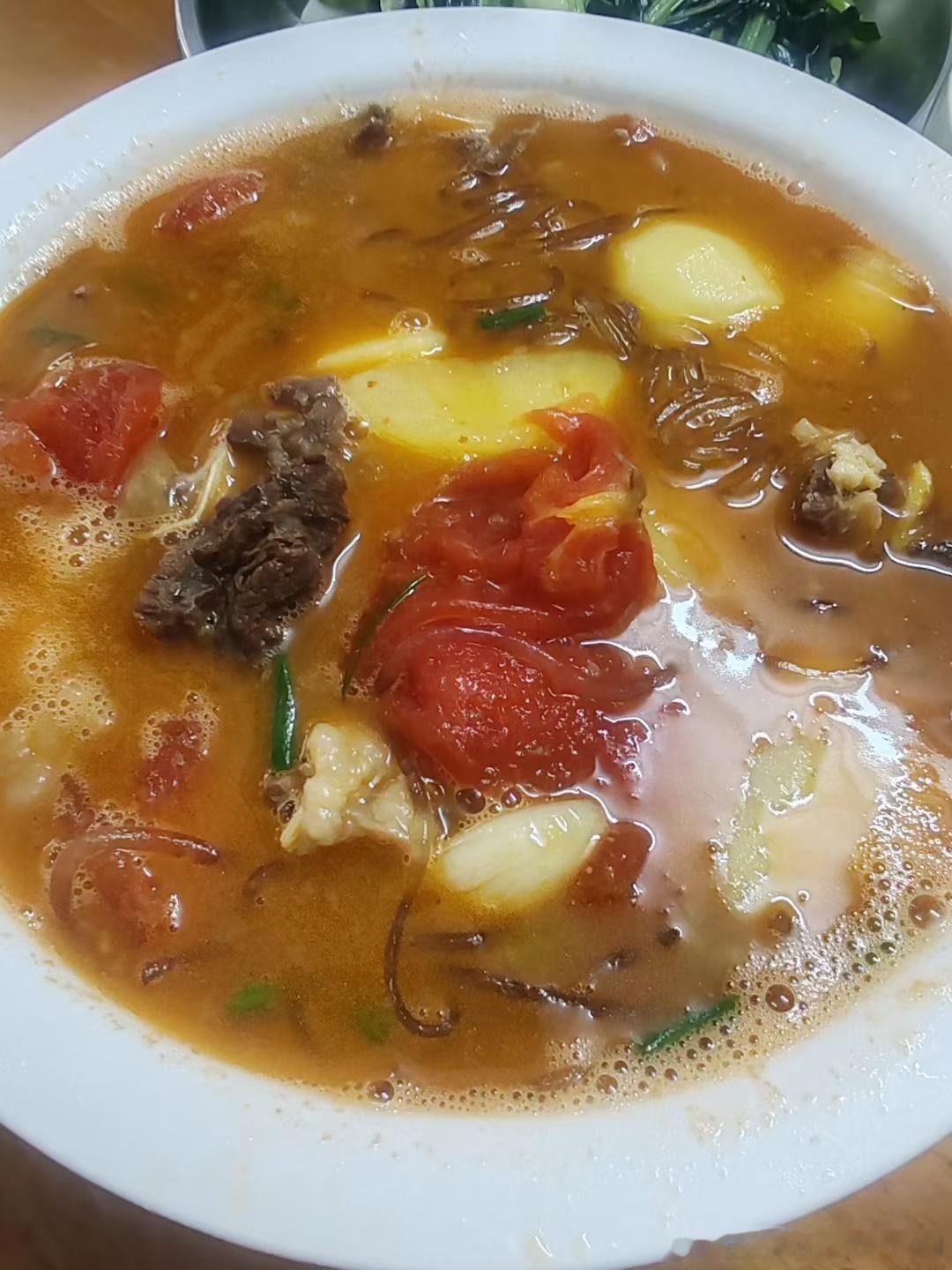 冬至不端饺子碗,冻掉下巴没人管,福建漳州秘制沙茶酱,搭配牛肉炖土豆西红柿粉丝。美味佳肴