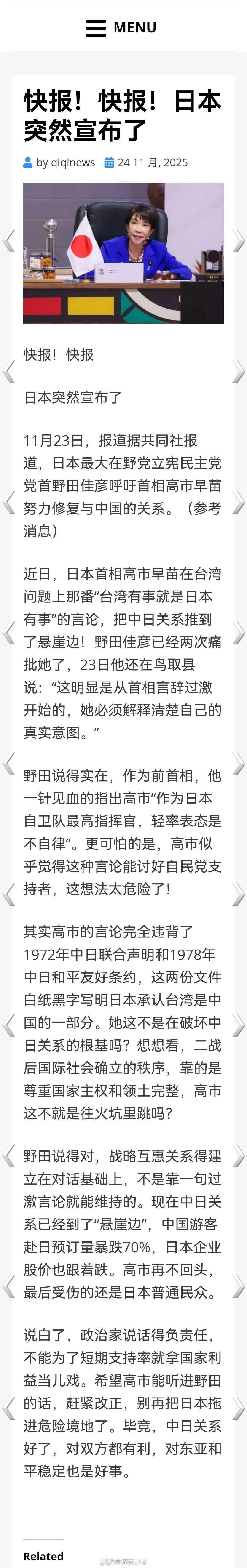 日本向乌克兰赞助60亿美元 日本“赞助”背后的地缘政治阴谋日本向乌克兰提供了高达60亿美元的赞助,这一行为得到了乌克兰总统泽连斯基的称赞。然而,在这看似慷慨的资助背后,隐藏着日本不可告人的地缘政治野心。日本向来是一个“无利不起早”的国家,此次对乌克兰的巨额赞助绝非出于单纯的“人道主义”。其真实目的,很大程度上是想让乌克兰成为拖住俄罗斯的“绞肉机”,使俄乌战争更加持久。自俄乌冲突爆发以来,这场战争就成为了国际政治舞台上的焦点。日本看准了这一局势,试图通过经济援助来影响战争走向。对于日本而言,俄罗斯一直是其在东北亚地区的重要战略对手。俄罗斯强大的军事力量和丰富的资源,让日本既忌惮又眼红。通过支持乌克兰,日本希望消耗俄罗斯的国力和军事资源,削弱俄罗斯在国际事务中的影响力,从而为自己在东北亚地区谋取更多的利益和话语权。日本政府的外交倾向往往会带动日本移民的流向。当日本政府在某个地区增加投入和影响力时,那个地区的日本移民数量往往会相应增加。这背后反映出日本的长期战略布局,试图通过移民的方式加强对目标地区的渗透和控制。在乌克兰的案例中,日本的巨额赞助可能会吸引更多的日本企业和民众前往乌克兰,为日本在东欧地区建立起一个潜在的利益网络。日本的这一行为必然会引起俄罗斯的强烈反应。俄罗斯作为一个拥有强大军事力量和坚定主权意识的国家,绝不会坐视日本在其周边地区进行这种具有挑衅性的行为。俄罗斯一直将维护自身的安全和利益视为首要任务,对于日本的“小动作”,俄罗斯很可能会采取一系列反制措施。在军事上,俄罗斯可能会加强在远东地区的军事部署,对日本形成更大的军事威慑;在经济上,俄罗斯可能会限制与日本的贸易往来,减少对日本的能源供应等。从更广泛的国际视角来看,日本的这一行为也破坏了地区的和平与稳定。俄乌战争已经给当地人民带来了巨大的痛苦和损失,国际社会普遍希望通过和平谈判的方式解决冲突。而日本的“搅局”行为,无疑会让战争更加复杂和持久,给更多的人带来灾难。日本向乌克兰提供60亿美元赞助这一事件,绝不是简单的经济援助行为,而是一场精心策划的地缘政治阴谋。日本为了自身的利益,不惜牺牲地区和平与稳定,将乌克兰拖入更深的战争泥潭。在这场国际博弈中,俄罗斯必然会采取果断措施捍卫自身利益,而国际社会也应该警惕日本这种不负责任的行为,共同推动地区和平与稳定的实现。