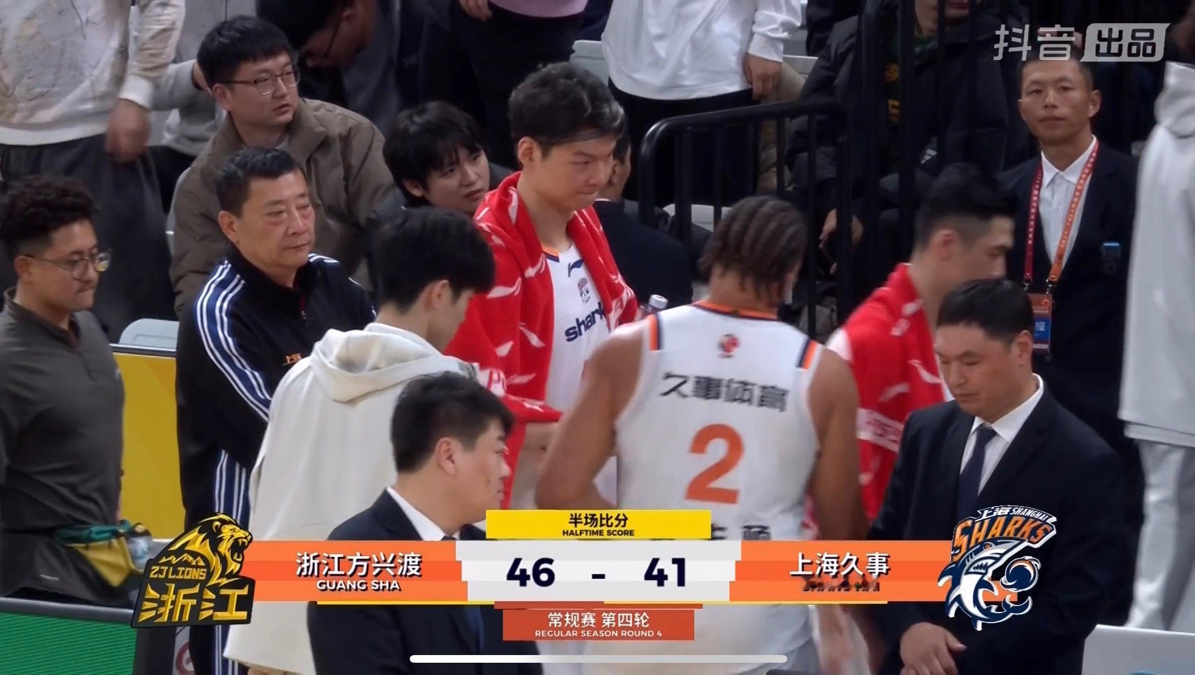 两队第二节和第一节得分差不少,广厦作为主队还好本节末打出一波高潮 广厦男篮vs上海男篮