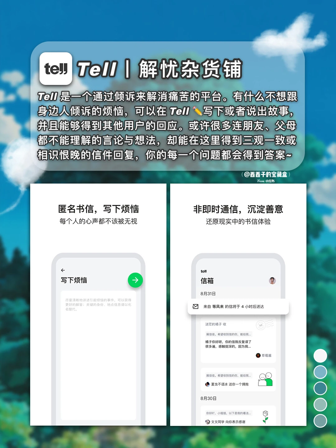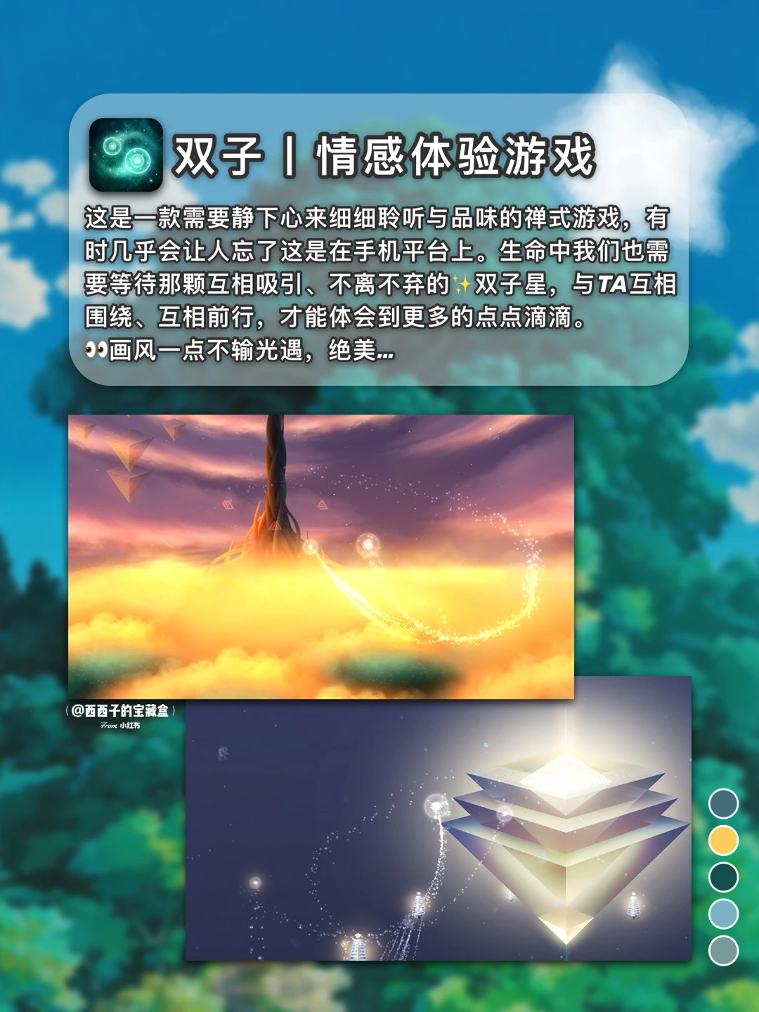 [飞吻R]希望这些App与游戏能带给你温暖与鼓励! · 🌈Tell丨解忧杂货铺 · 🌈小森生活丨田园生活模拟手游 · 🌈小睡眠丨专注你的睡眠 · 🌈光遇丨唯美的飞行游戏 · 🌈MOON丨观察月球 · 🌈双子丨两颗星星的旅程 · 🌈漫长旅途丨一次漫长旅途 · 🌈动物餐厅丨 种花养猫开餐厅 · 🤗希望好心情每天照常营业 烦心事永玖打烊ヾ(◍°∇°◍)ノ゙ 西西子总会发现宝藏app:有趣,有料,有价值,分享那些你不知道的实用APP。