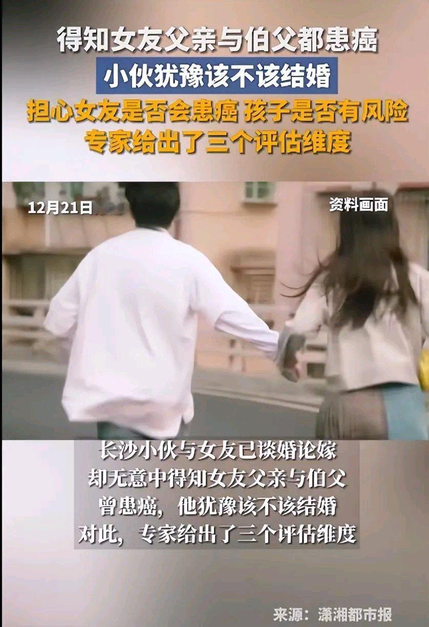 长沙一位小伙和女友已到谈婚论嫁阶段,无意间了解到女友的父亲和伯父曾患癌症,他开始犹豫是否要步入婚姻殿堂;医院专家表示:这种担忧并非毫无道理。