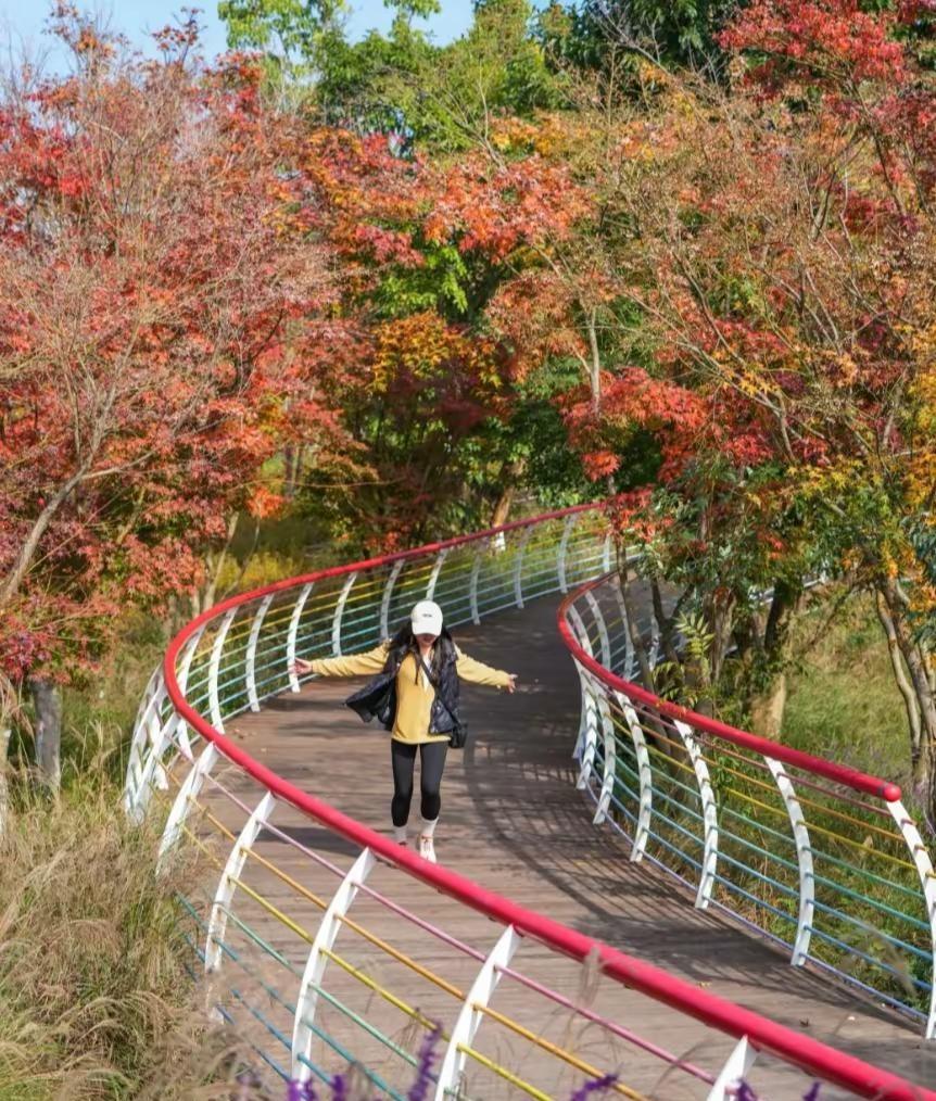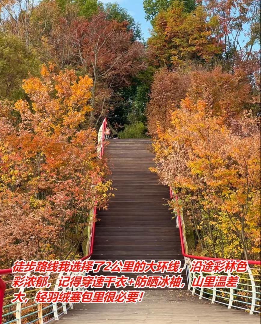 龙泉山脉彩林路线全攻略🍁。今天要跟大家分享我的龙泉山彩林探险之旅!2025年的彩林季真是太惊艳了,实测数据告诉你现在正是最佳观赏期!📸早上6:30准时抵达红花堰停车场,幸好听了本地人建议,7点后这里就被旅游大巴占领了。直奔见晴小院喝上头道茶,露台上的晨雾与彩林交织,简直美到窒息!😍今年龙泉山脉彩林观赏期持续到11月30日前后。我11月25日去的时候,海拔2000-2800米的核心区彩林覆盖率仍达60%-70%,红黄橙绿层层叠叠,随手一拍都是大片!特别推荐柏村美术馆后门的竹林秘境,用广角仰拍“艺术馆+彩林+群山”的构图,发朋友圈直接被问爆了!🎯徒步路线我选择了2公里的大环线,沿途彩林色彩浓郁,搭配着天生桥瀑布的水雾,仿佛在做天然山泉水雾SPA。记得穿速干衣+防晒冰袖,山里温差大,轻羽绒塞包里很必要!吃货注意:凉水井的豆花饭超赞,但“云中漫步”咖啡馆的38元咖啡真心不值,建议自带挂耳。🚗停车小贴士:栖肆桃源免费停车场,反着走路线人少一半,还能蹭到绝美落日观景台!实测装备建议:登山杖不如捡树枝防滑,穿旧鞋!带保鲜袋当坐垫超实用。这些血泪经验帮你避开所有坑!龙泉山脉彩林路线 2025彩林季 成都周边游