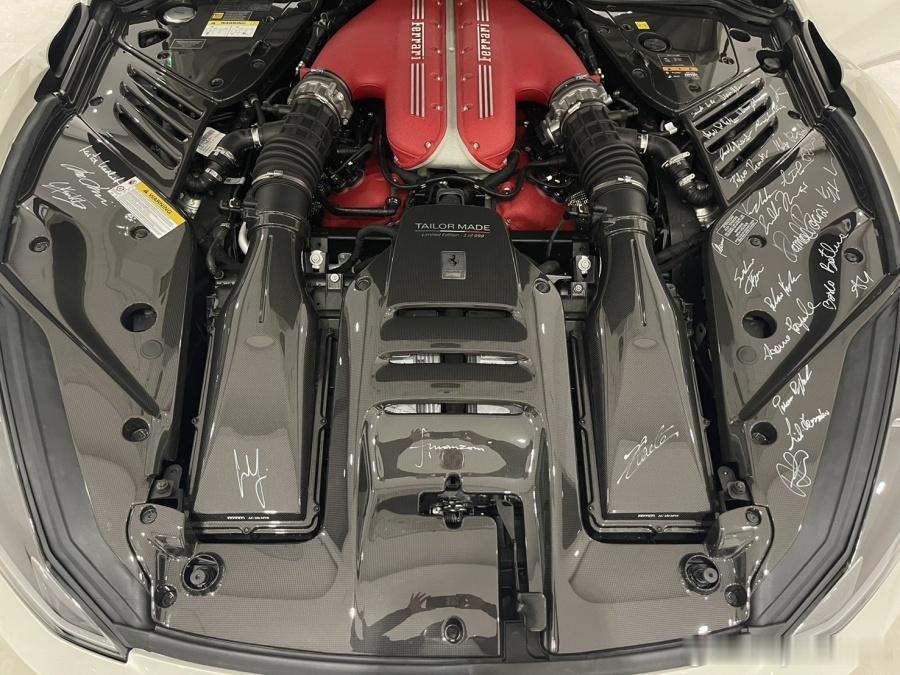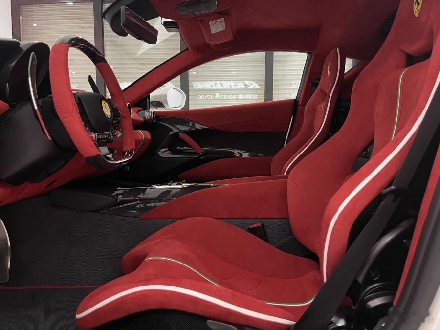 外观配色为Bianco Italia,搭配Bianco Mille Miglia长赛车拉花,描边分别为Verde GB23和Rosso FUoco,搭配起来形成了独特的意大利拉花,车身侧面下方也能看到这样搭配的拉花,此外还选择了碳纤维轮毂和漆盾。内饰方面,Tailor-made独占的赛车座椅以Rosso FX Alcantara为主体,中心的意大利国旗拉花点缀分别为Rosso Ferrari Leather,White Leather和Signal Green,头枕处还选配了法拉利盾徽的装饰。有趣的是,迎宾门槛和发动机的意大利拉花点缀与车身拉花的点缀颜色不一样,为Verde Bandiera,Bianco King和Rosso Bandiera--我认为这个应该才是默认的意大利国旗搭配。交付于位于日本东京的Rosso Scuderia,这台812 Competizione已经完成了出售。图片来自.trading