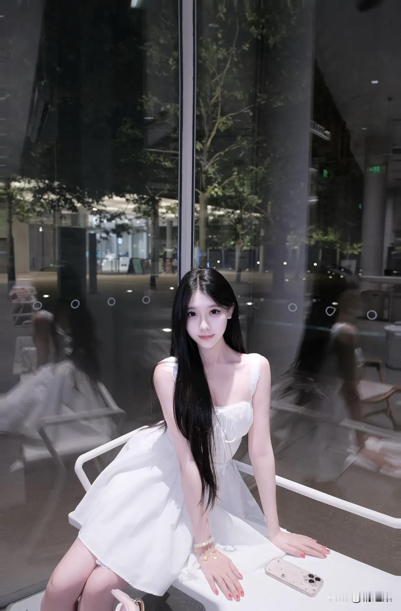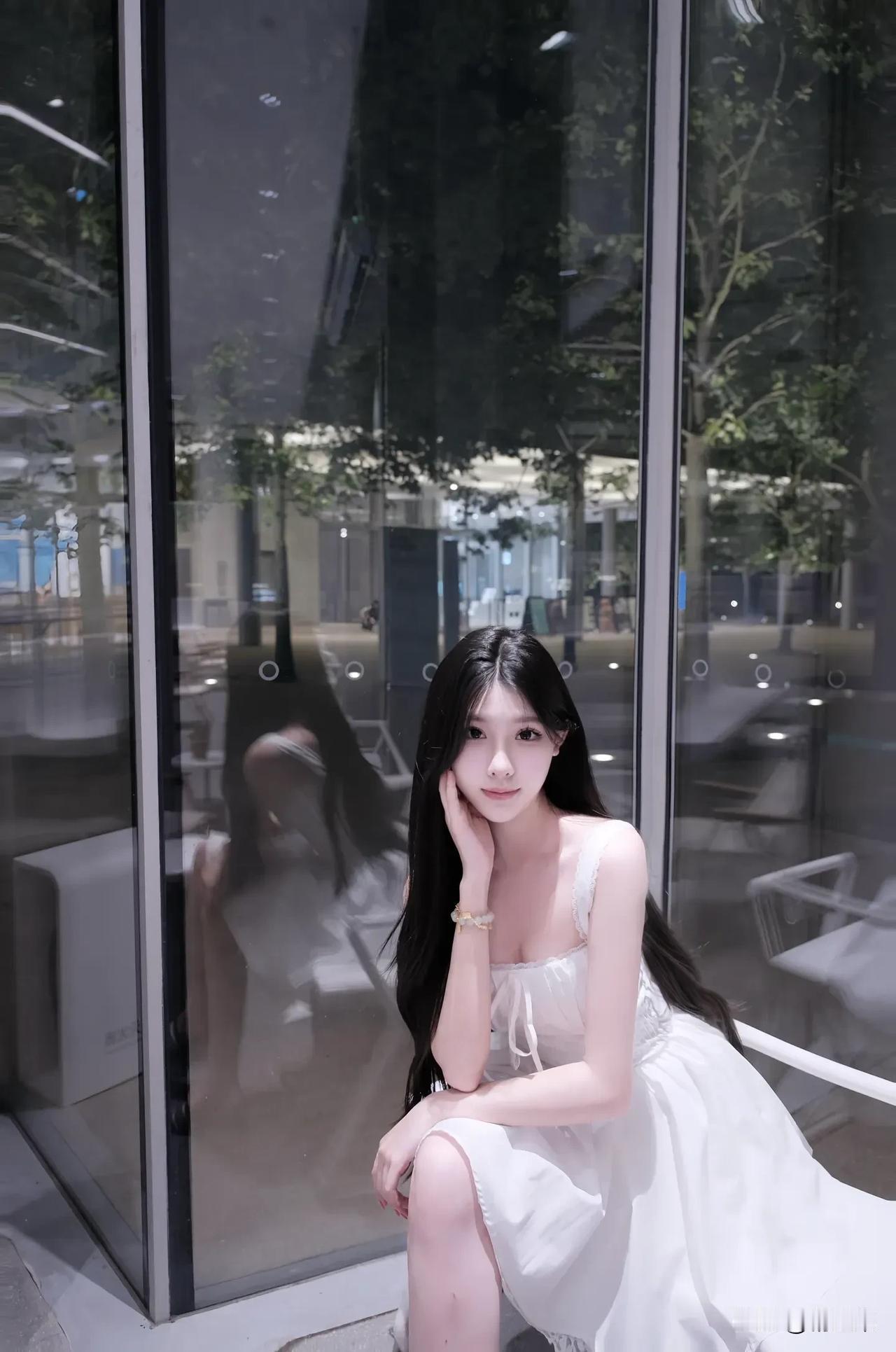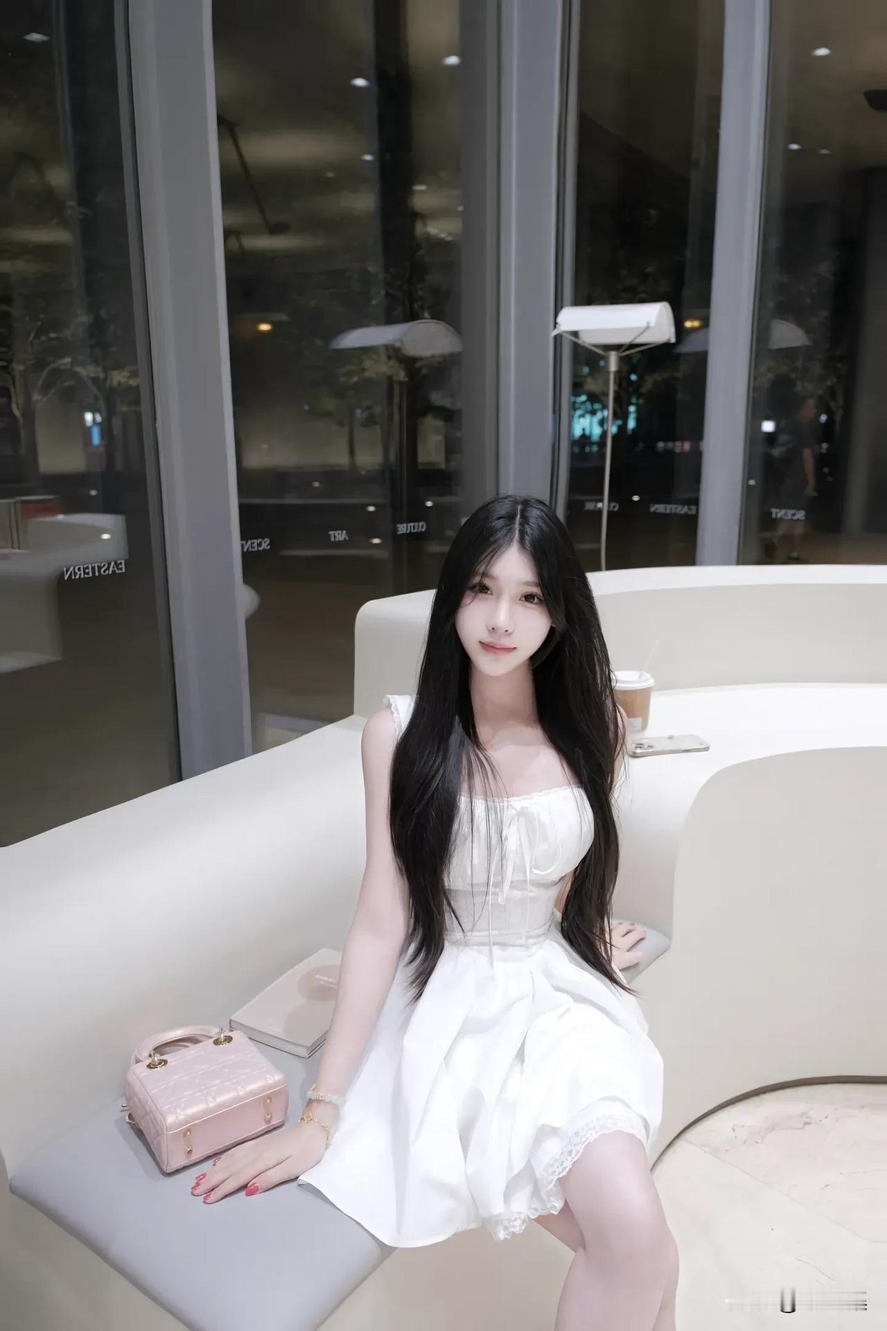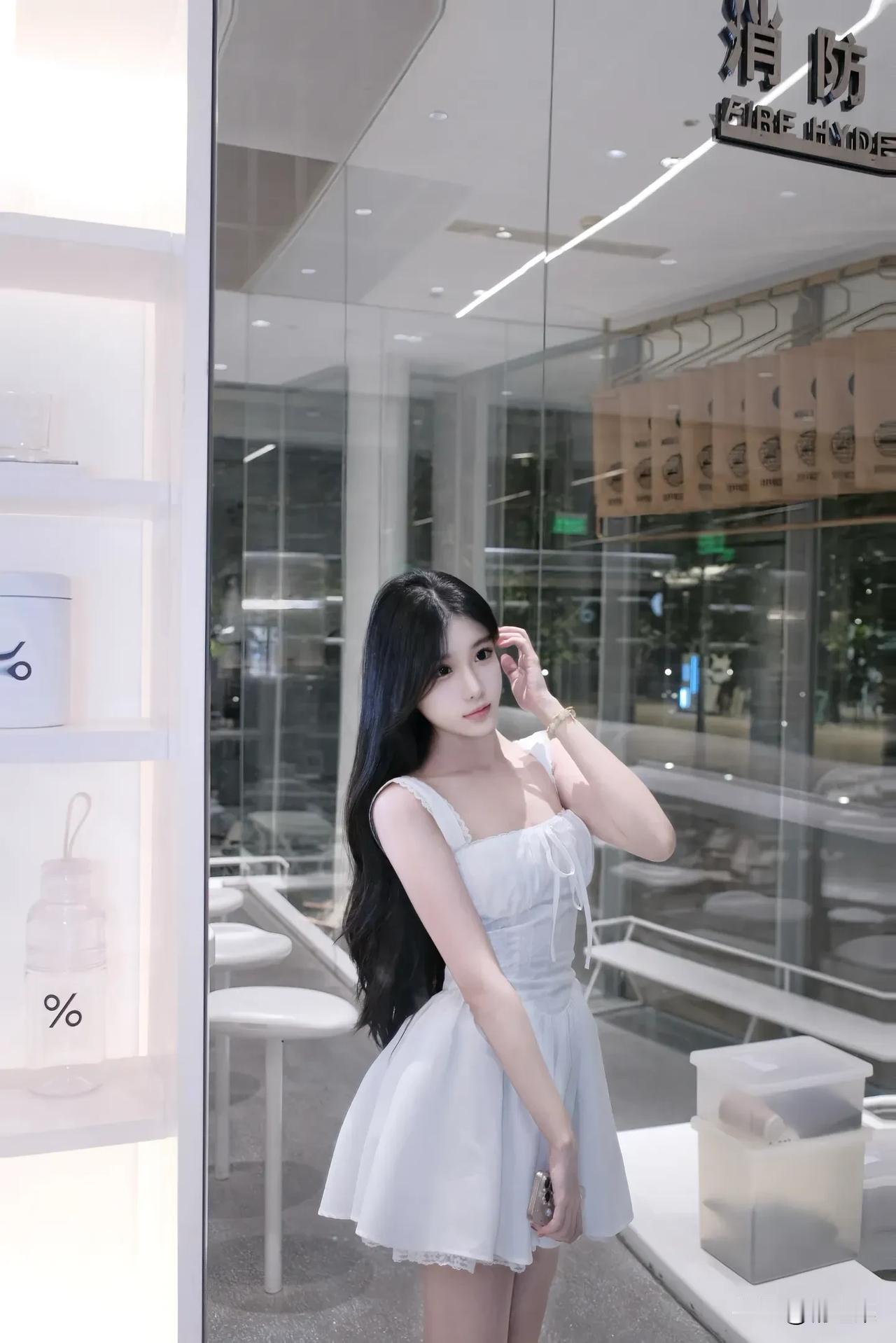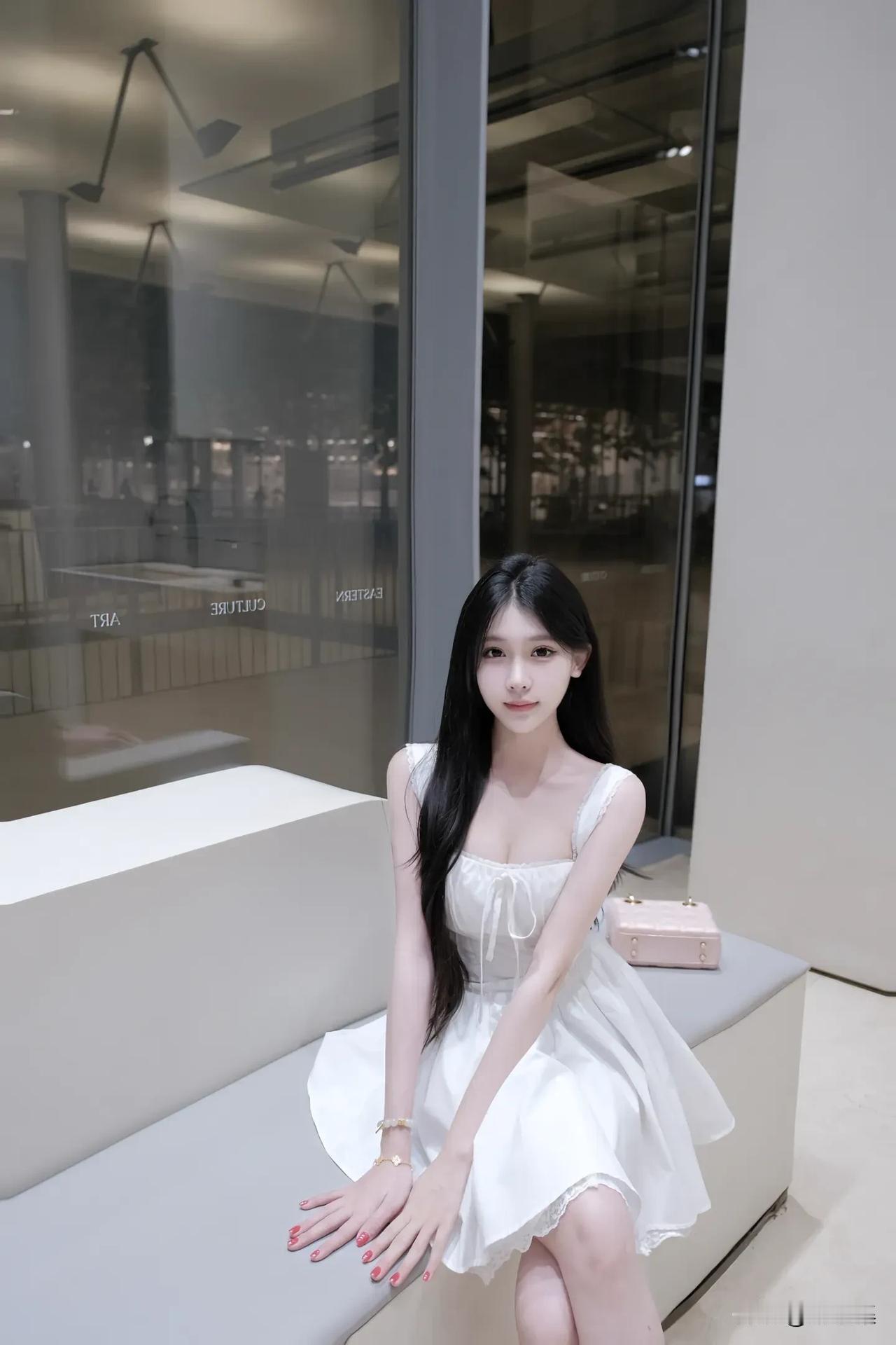 孙允珠-一个穿白色连衣裙的女士站在明亮的房间里。每日摄影分享简单穿搭好看吗