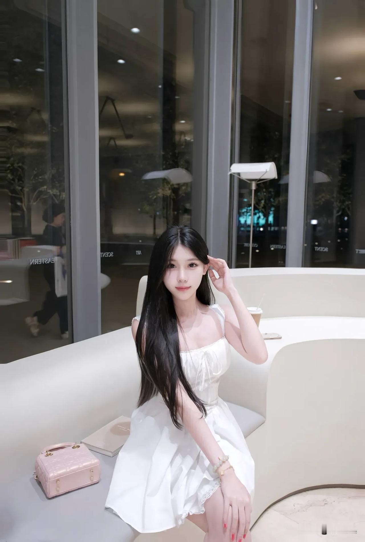 夏日清新穿搭,白色连衣裙搭配粉色小包,甜美可人!